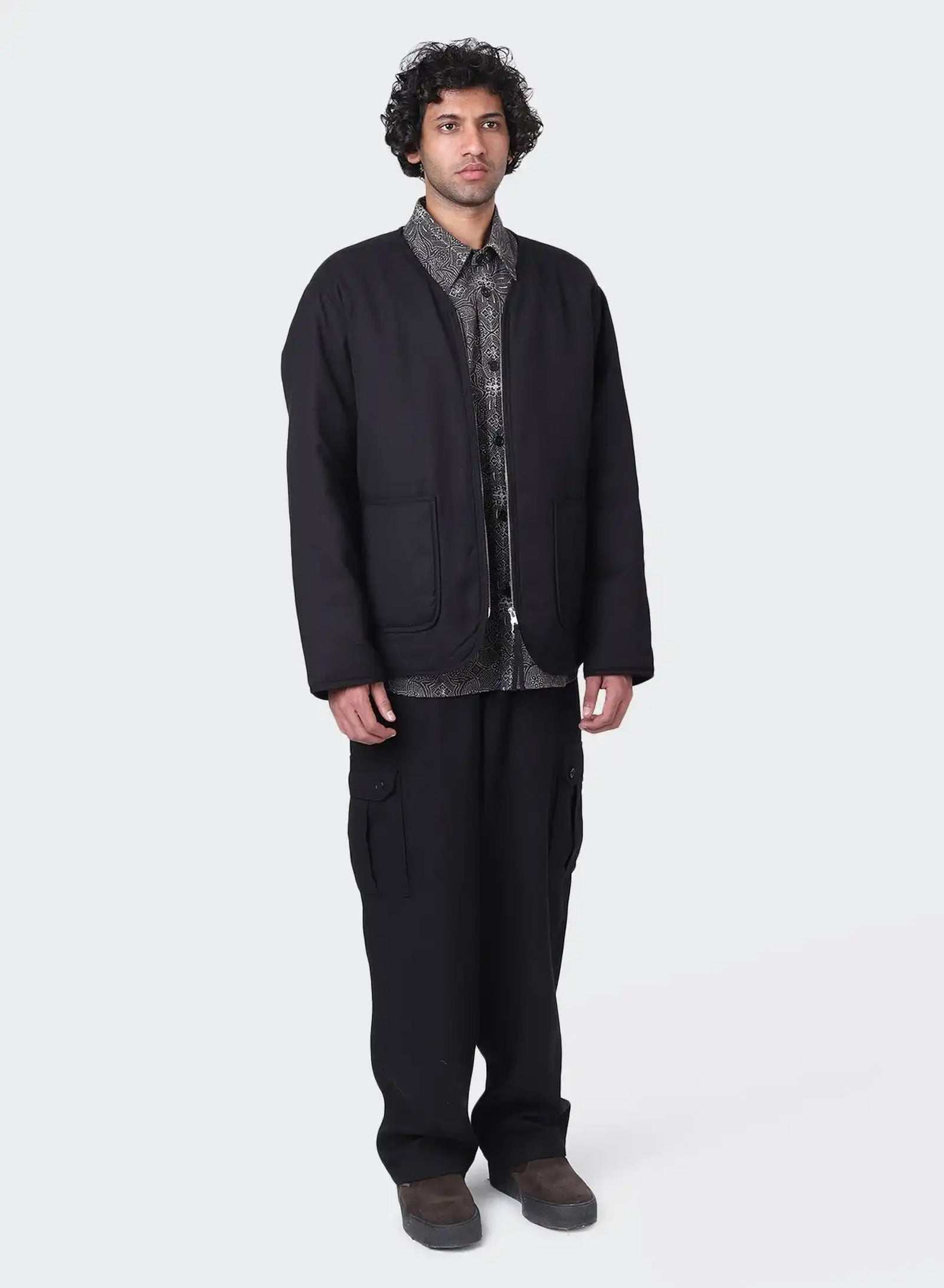 Quilted Liner Jacket With Binding Detailing On Hems And Two Way Zip