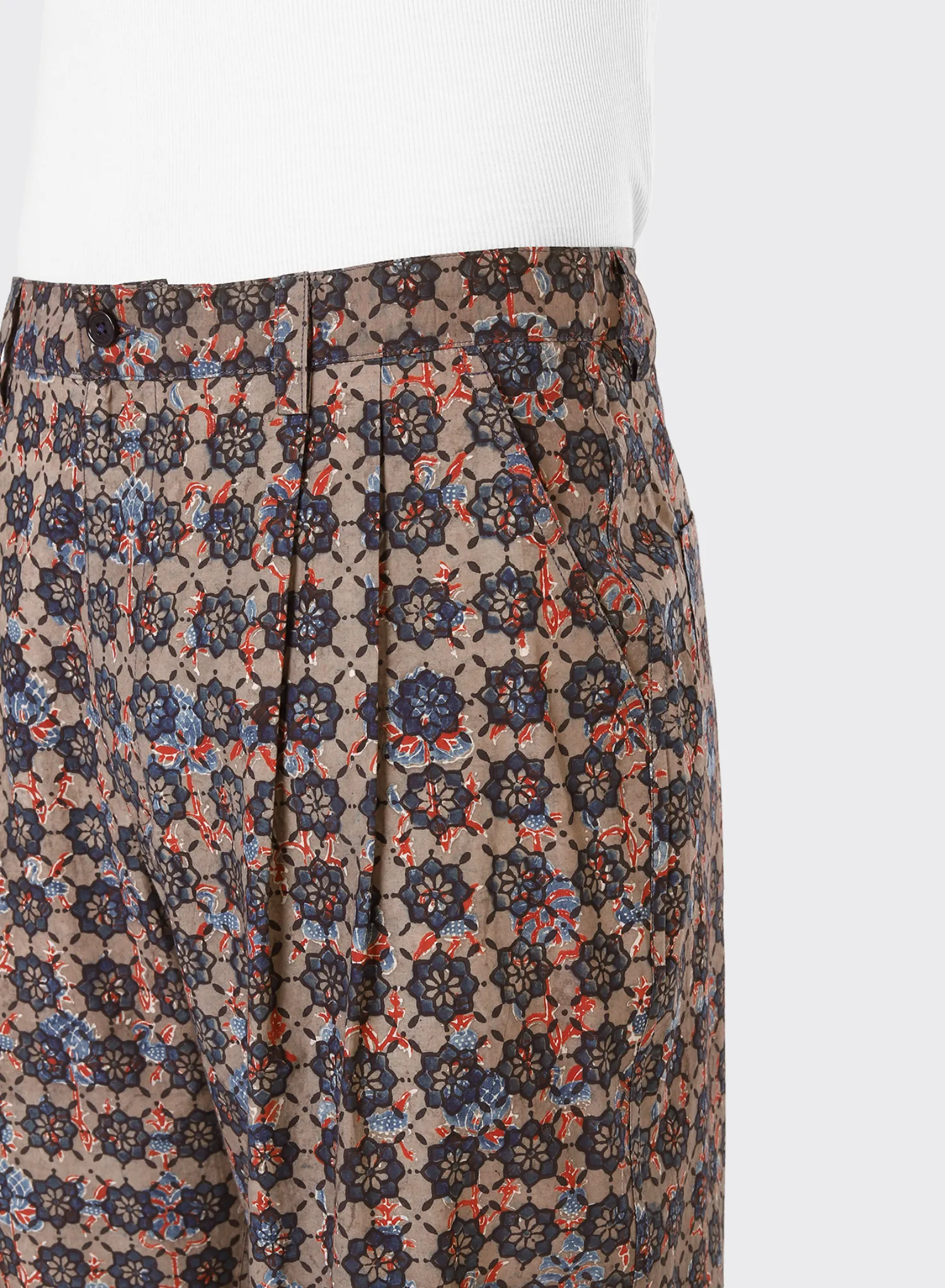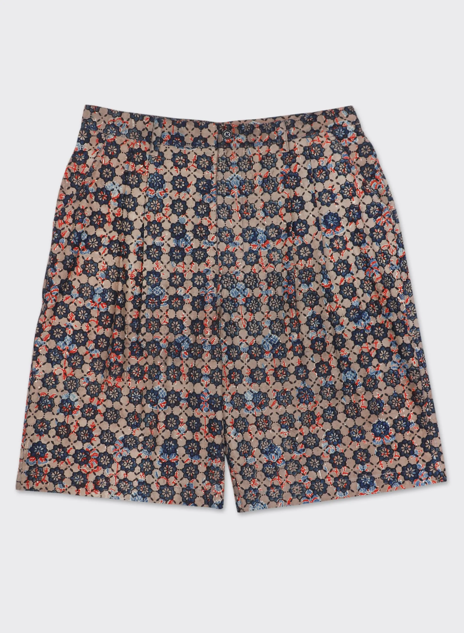 The garment may exhibit patchy dyeing and marks as a result of the natural dyeing process. The print may naturally fade due to exposure to sunlight and washing. Dry crocking (the transfer of dye onto other fabrics and surfaces when dry) may also occur. Refrain from pairing this clothing item with light colors until any remaining color has been eliminated, as there might be some color transfer.