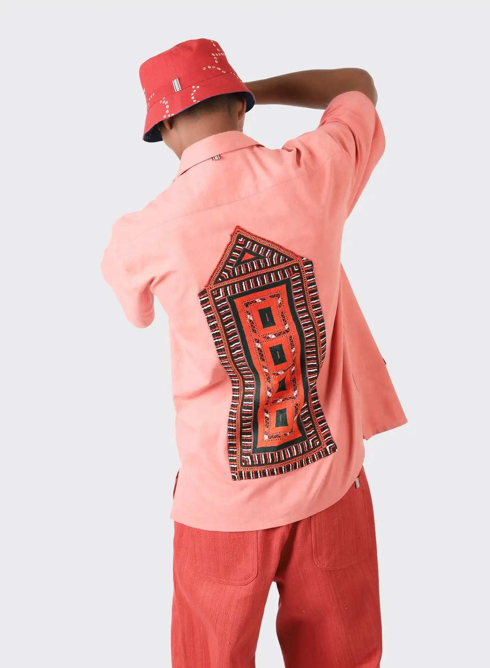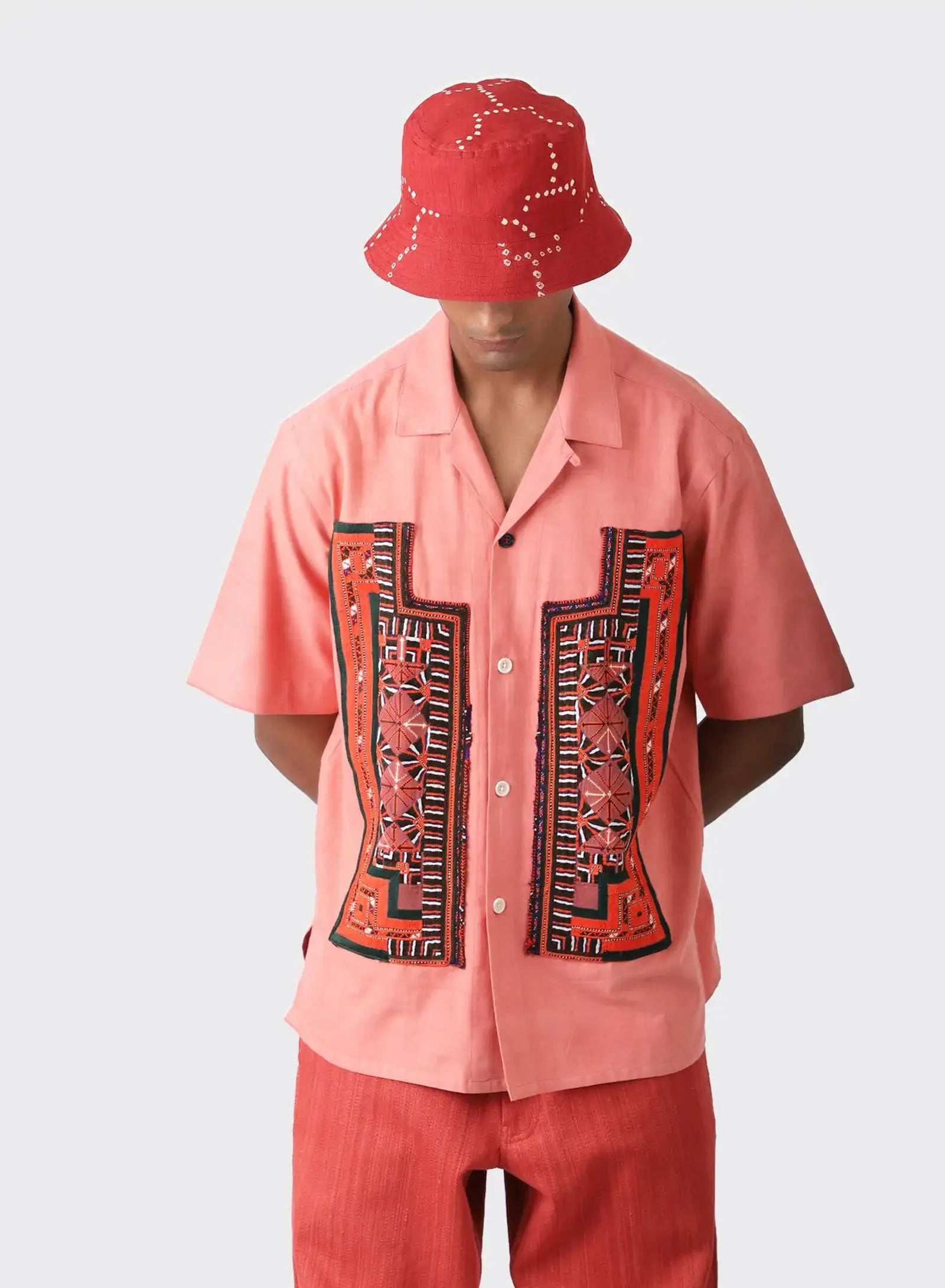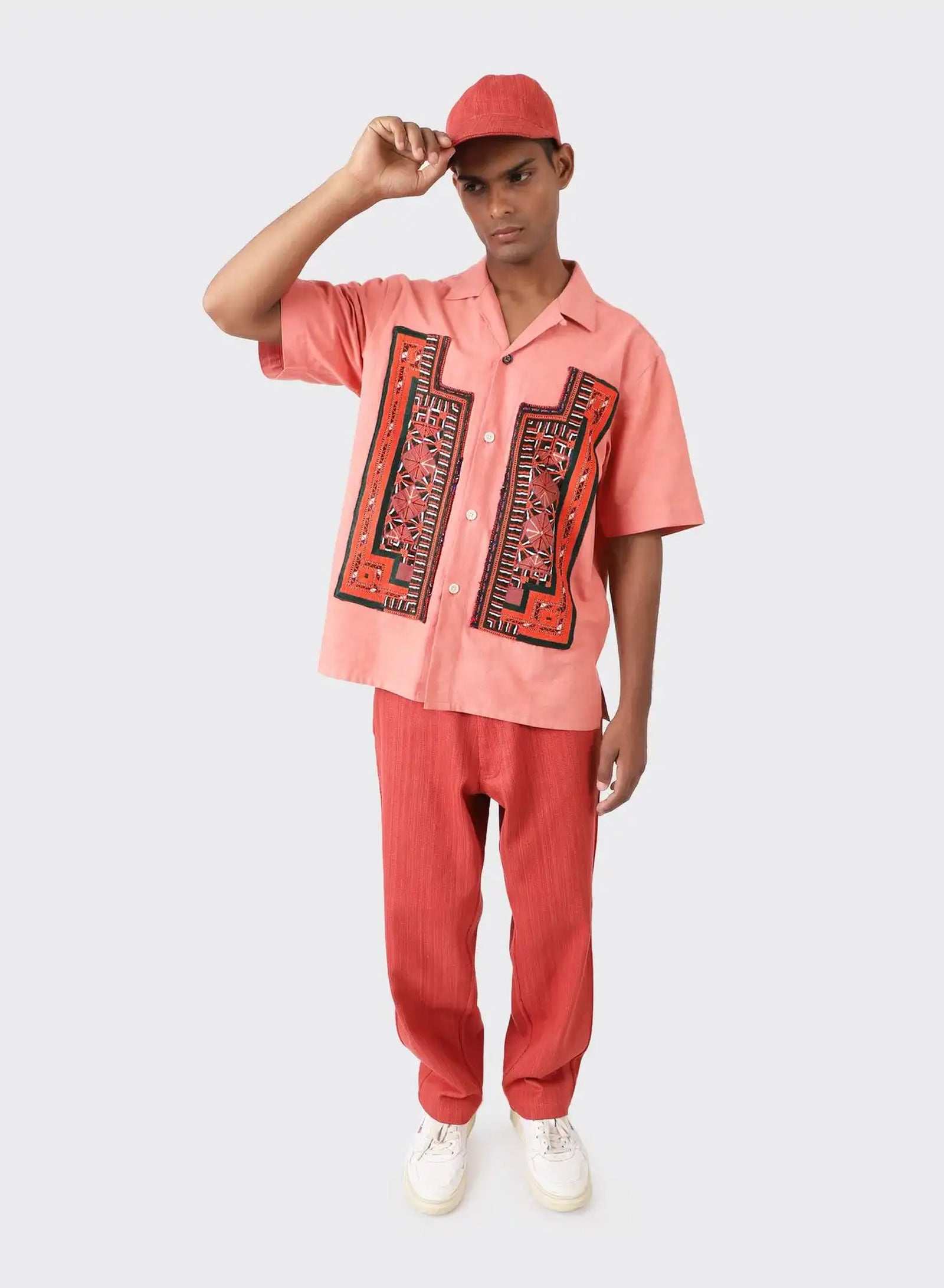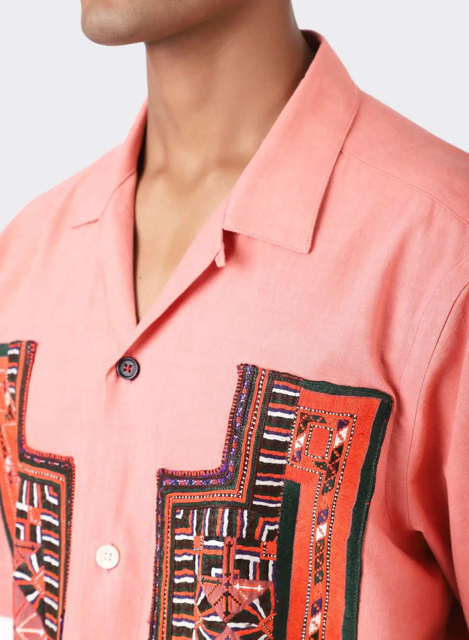 An Oversize Short Sleeve Camp Collar Shirt with Balochi Embroidery Panels.
