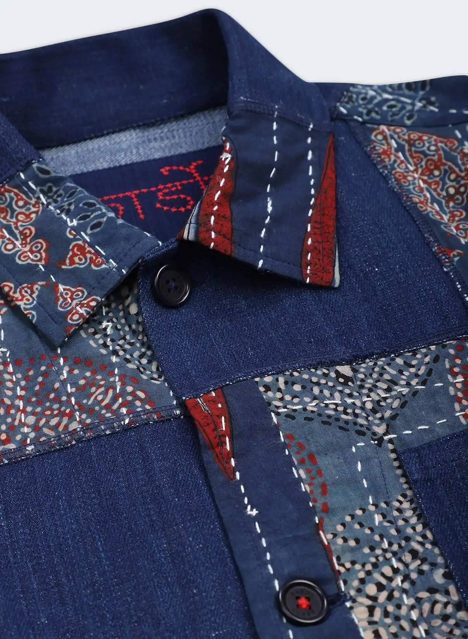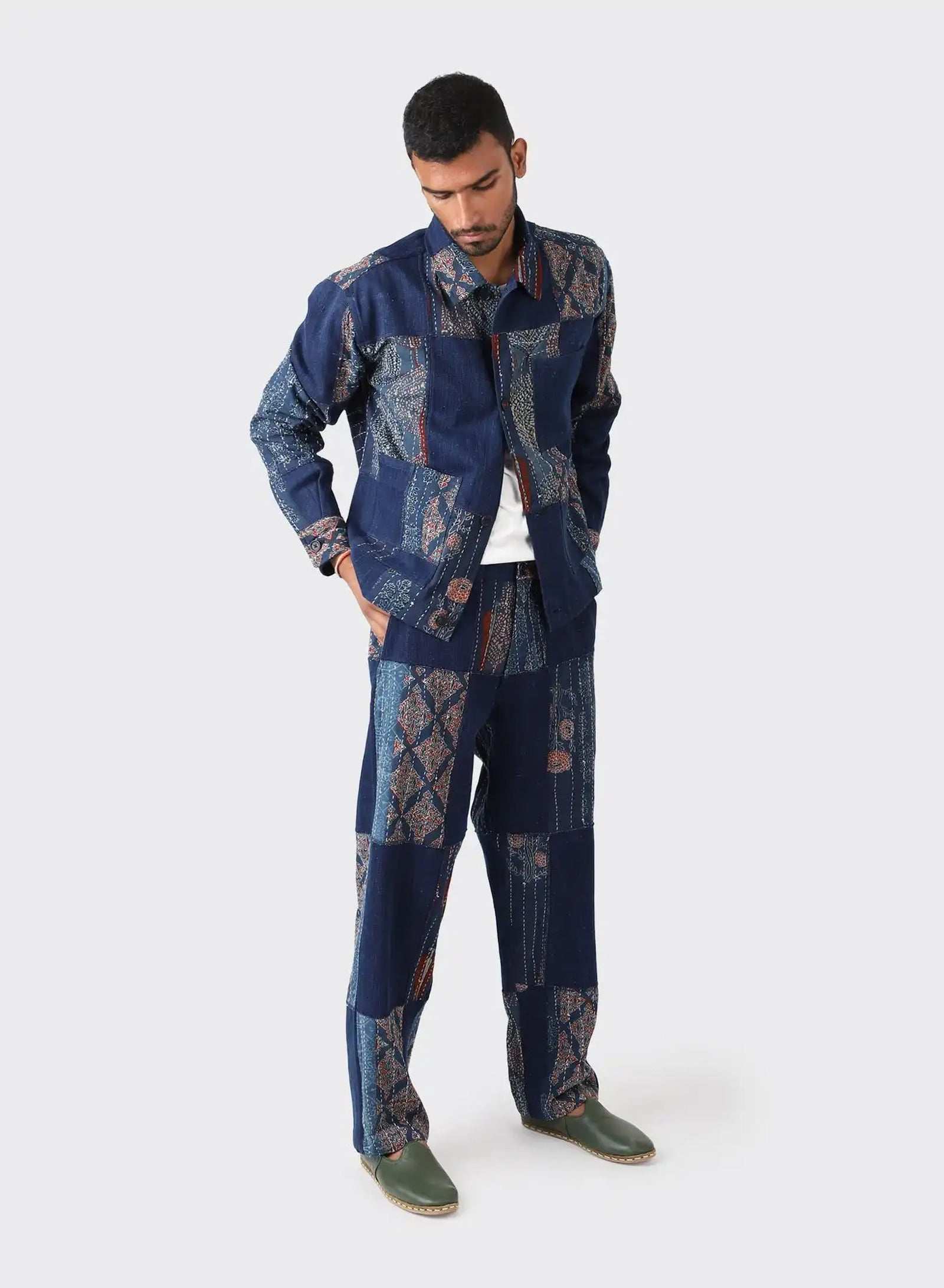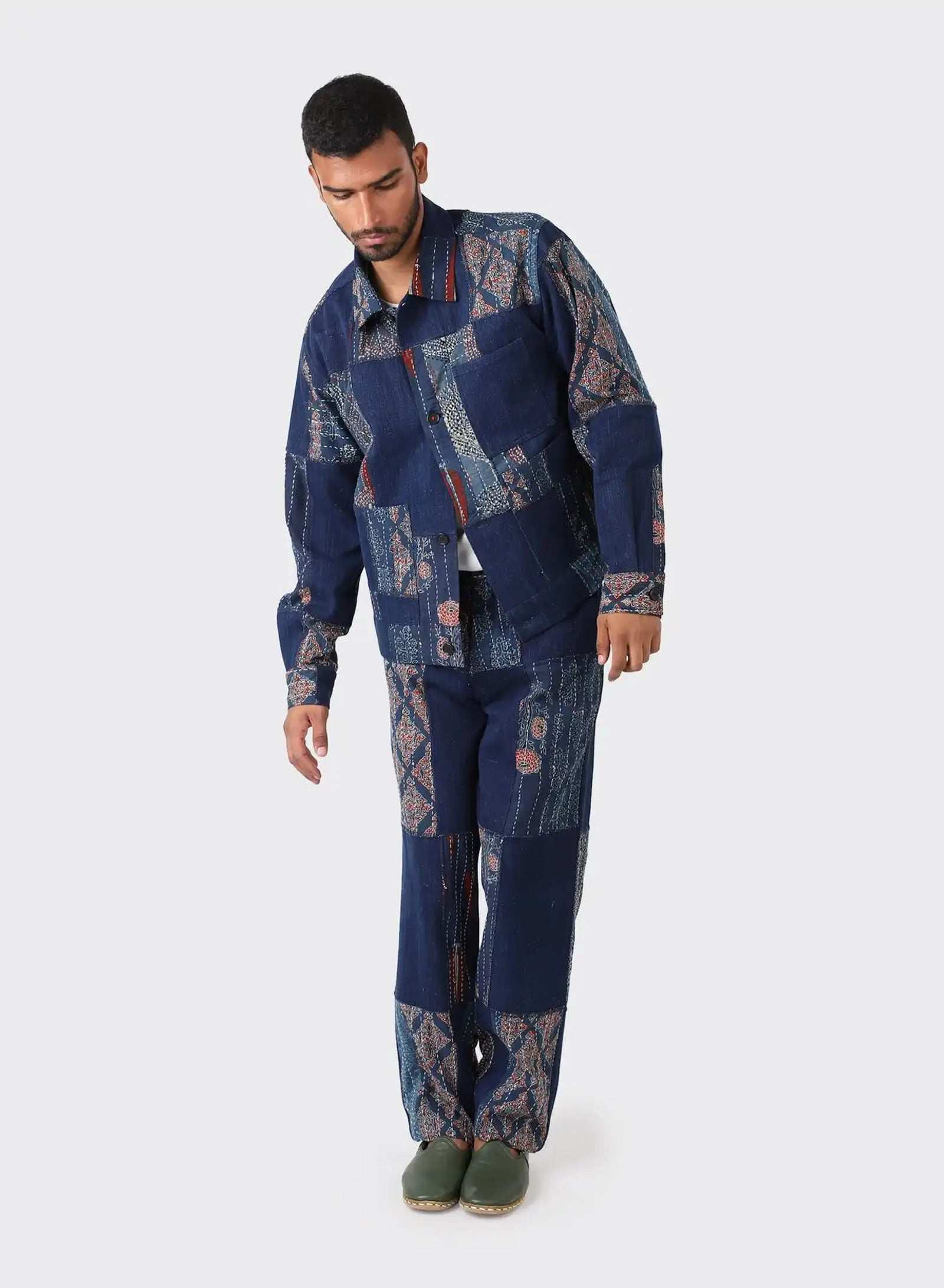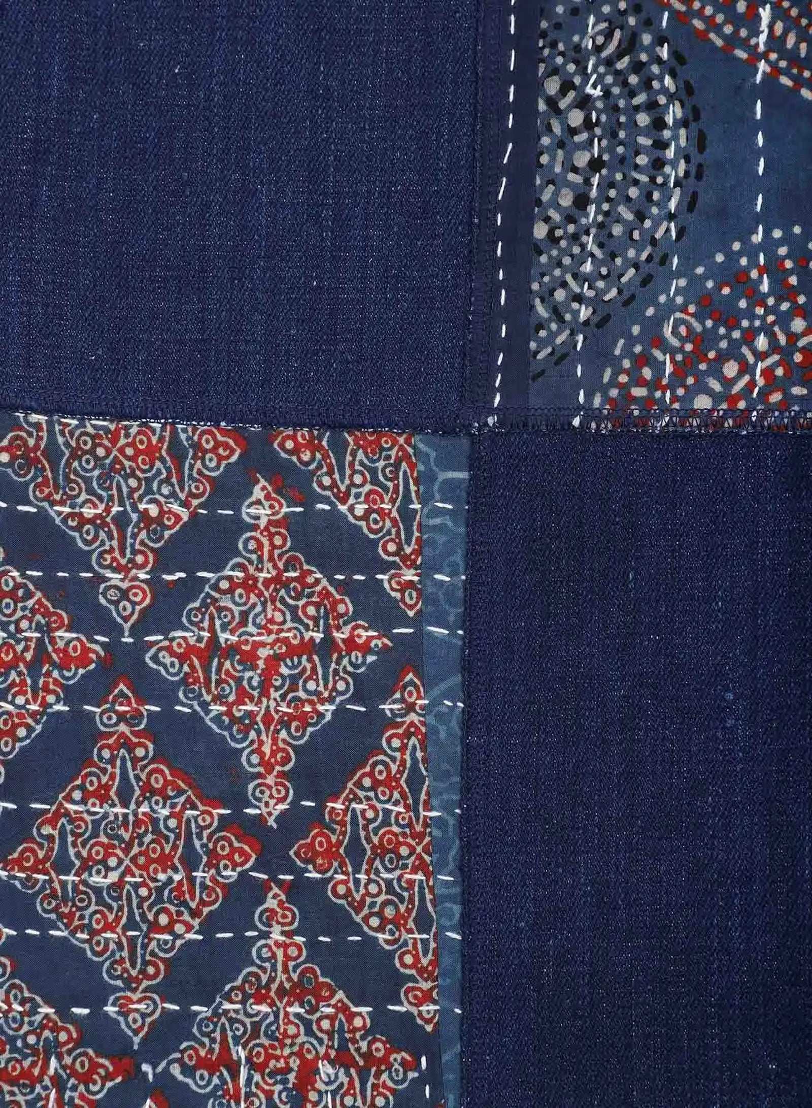 Boxy fit jacket in our handloom denim with kantha patches