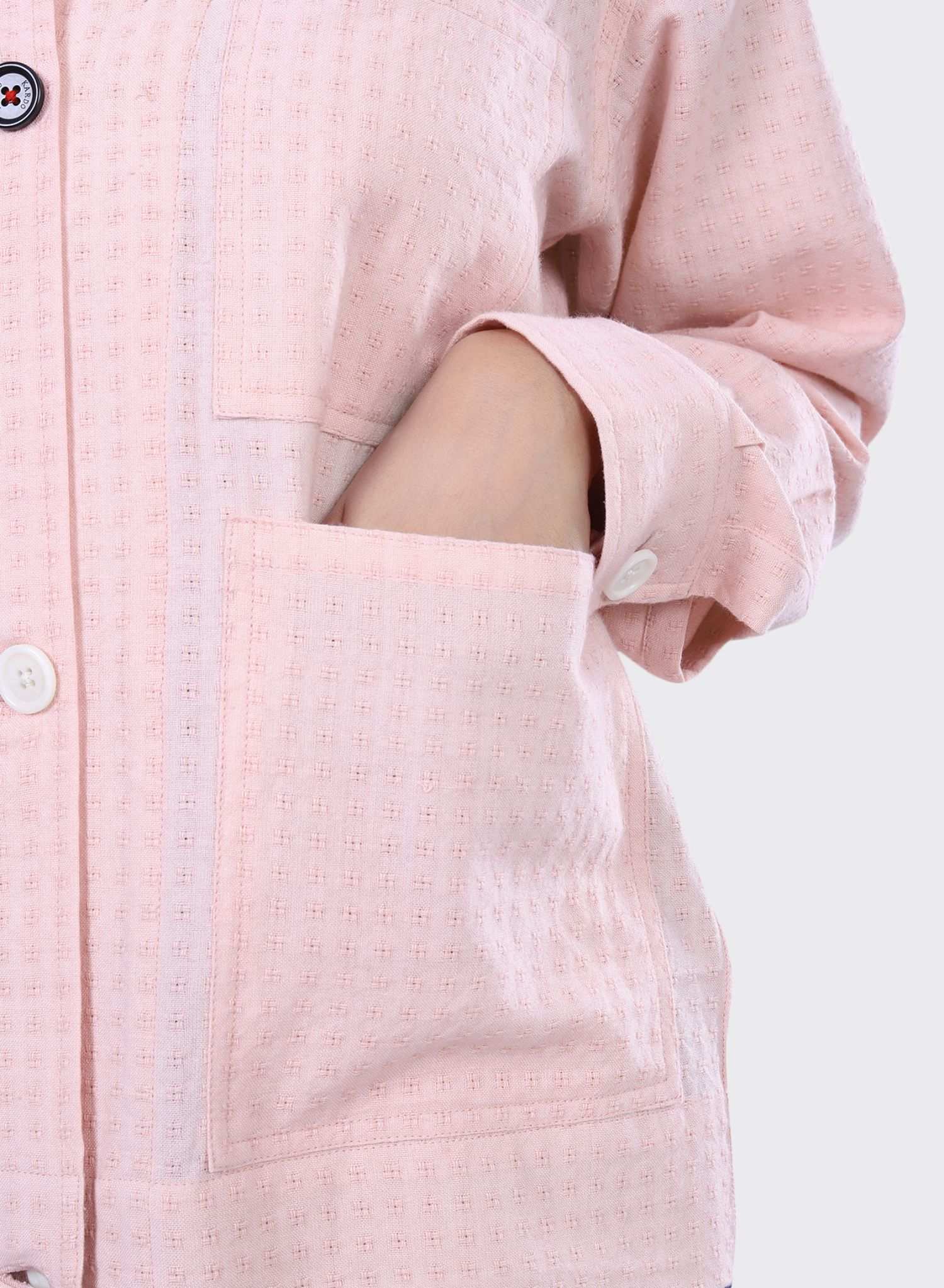 The fabric used in this garment was woven on a handloom by a master fabric weaver often using natural dyed yarns. Slight imperfections and flaws are characteristics of the fabric due to the hand process.