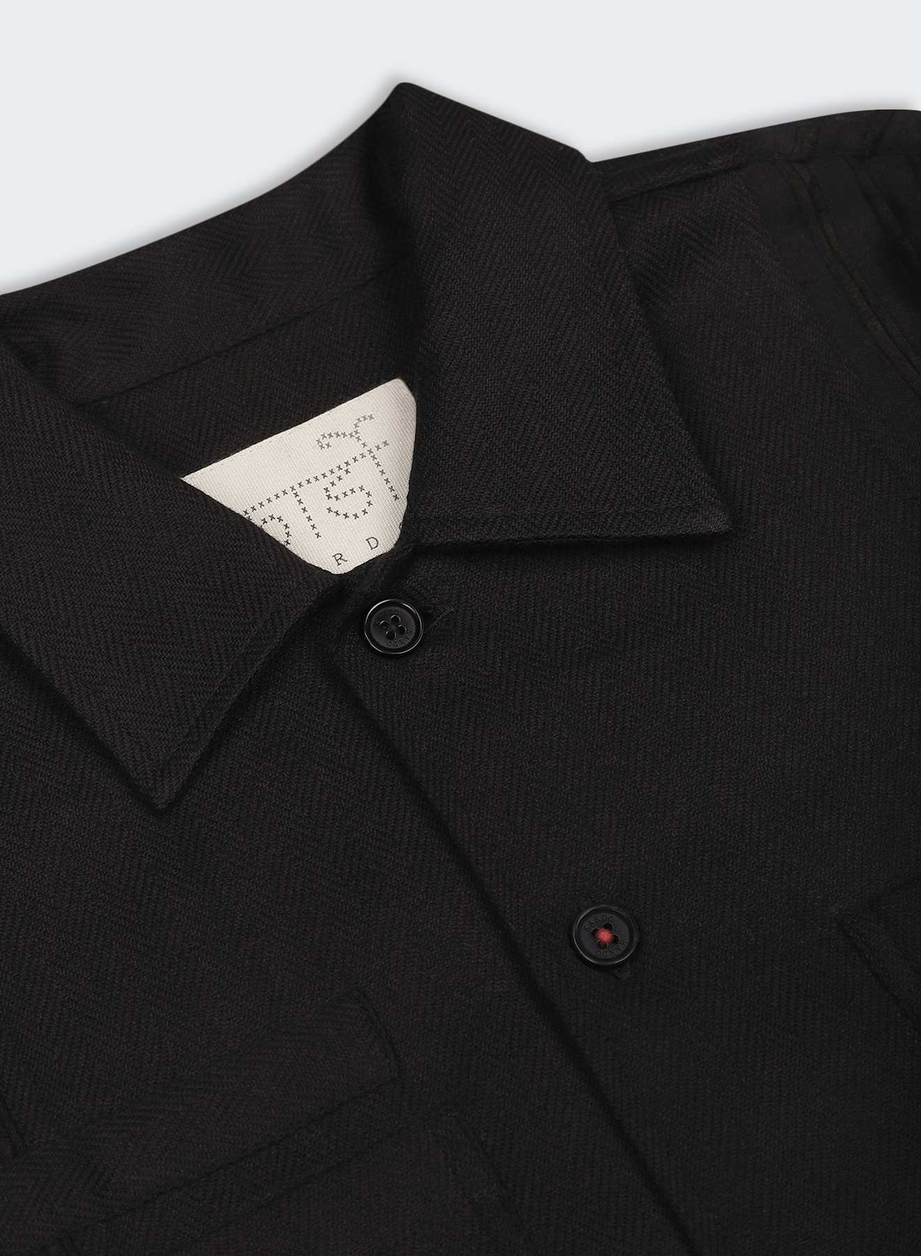 Our cotton herringbone meets the slow precision of extra weft weaving in this garment. On the handloom, thicker threads are inlaid into the warp to form motifs, each one set into place by hand. The herringbone gives the fabric its ordered backbone, while the extra weft brings small moments of raised texture that can be felt across the surface.