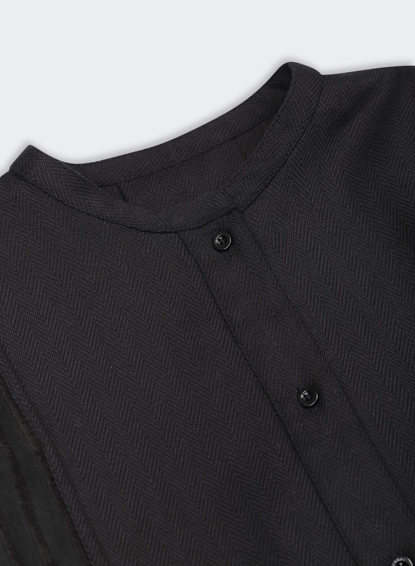 EVA is an oversized panelled dress with a half placket and a large reverse pleat. The panels draw the fabric downward in a smooth, measured fall, shaping the volume as it moves. Its proportions are held in balance, giving the dress a more sleek form.
