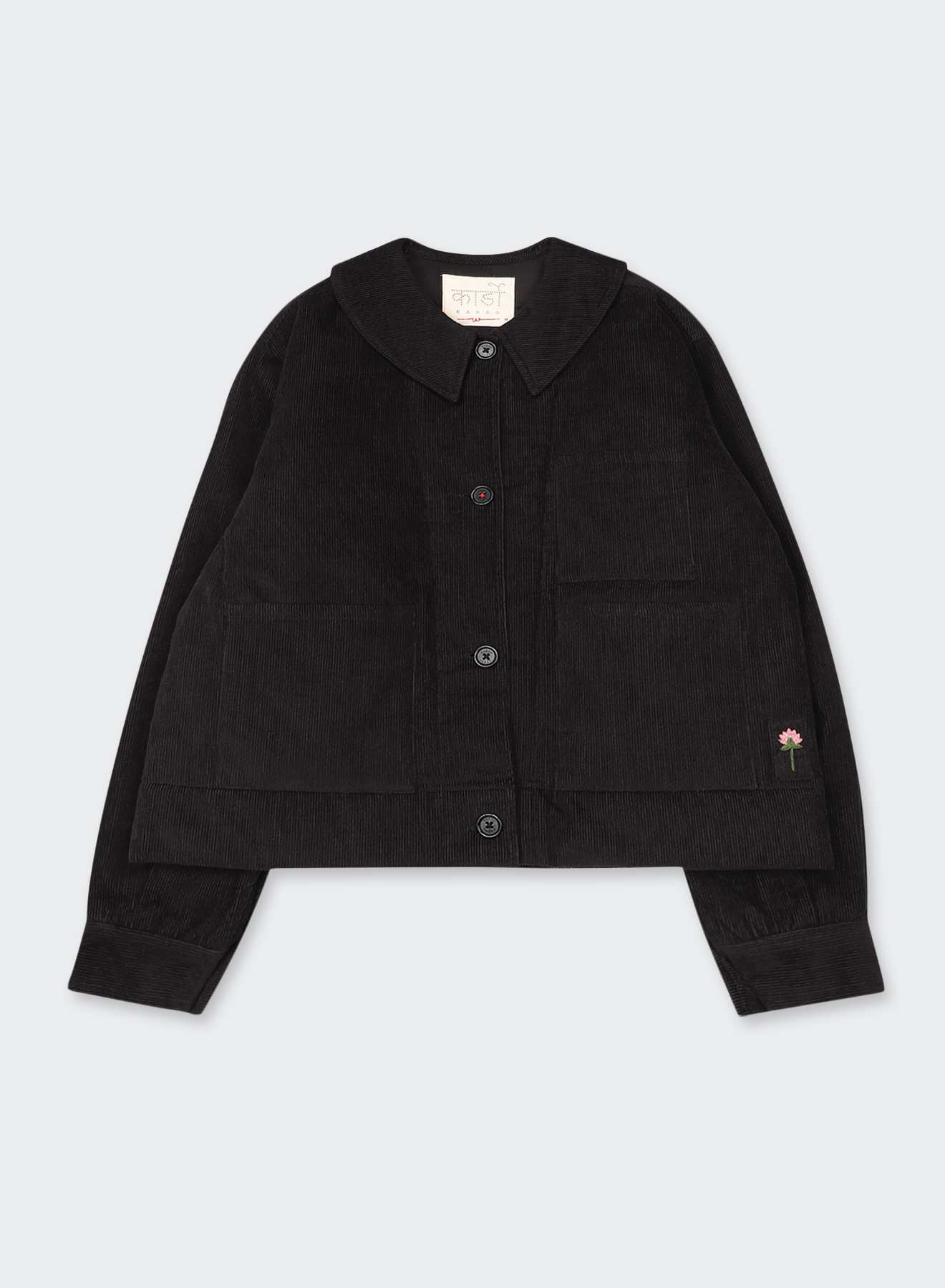 EVORA is a quilted jacket shaped in the tradition of vintage workwear. A peter pan collar highlights the frame, while the quilting adds depth to the surface. The cut sits close at the top and opens lightly through the body, keeping the proportions compact.