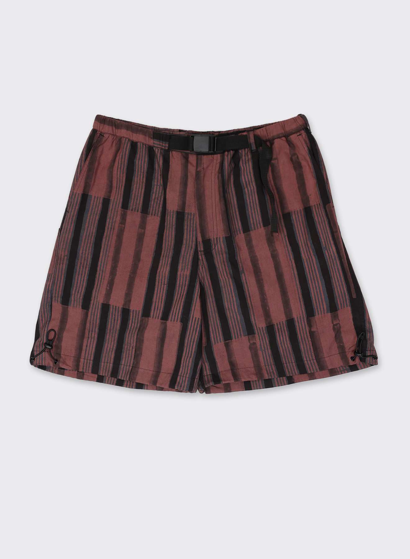 KAMI sits firm at the waist, its line held in place by a built-in belt that gathers the fabric into a steady, controlled volume. The shorts carry their shape outward from the hips, creating space through the leg without breaking its outline. Inside, a fine net layer adds subtle support, helping the form stay open and balanced as it moves.