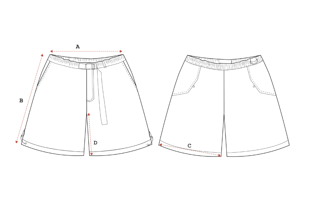 KAMI sits firm at the waist, its line held in place by a built-in belt that gathers the fabric into a steady, controlled volume. The shorts carry their shape outward from the hips, creating space through the leg without breaking its outline. Inside, a fine net layer adds subtle support, helping the form stay open and balanced as it moves.