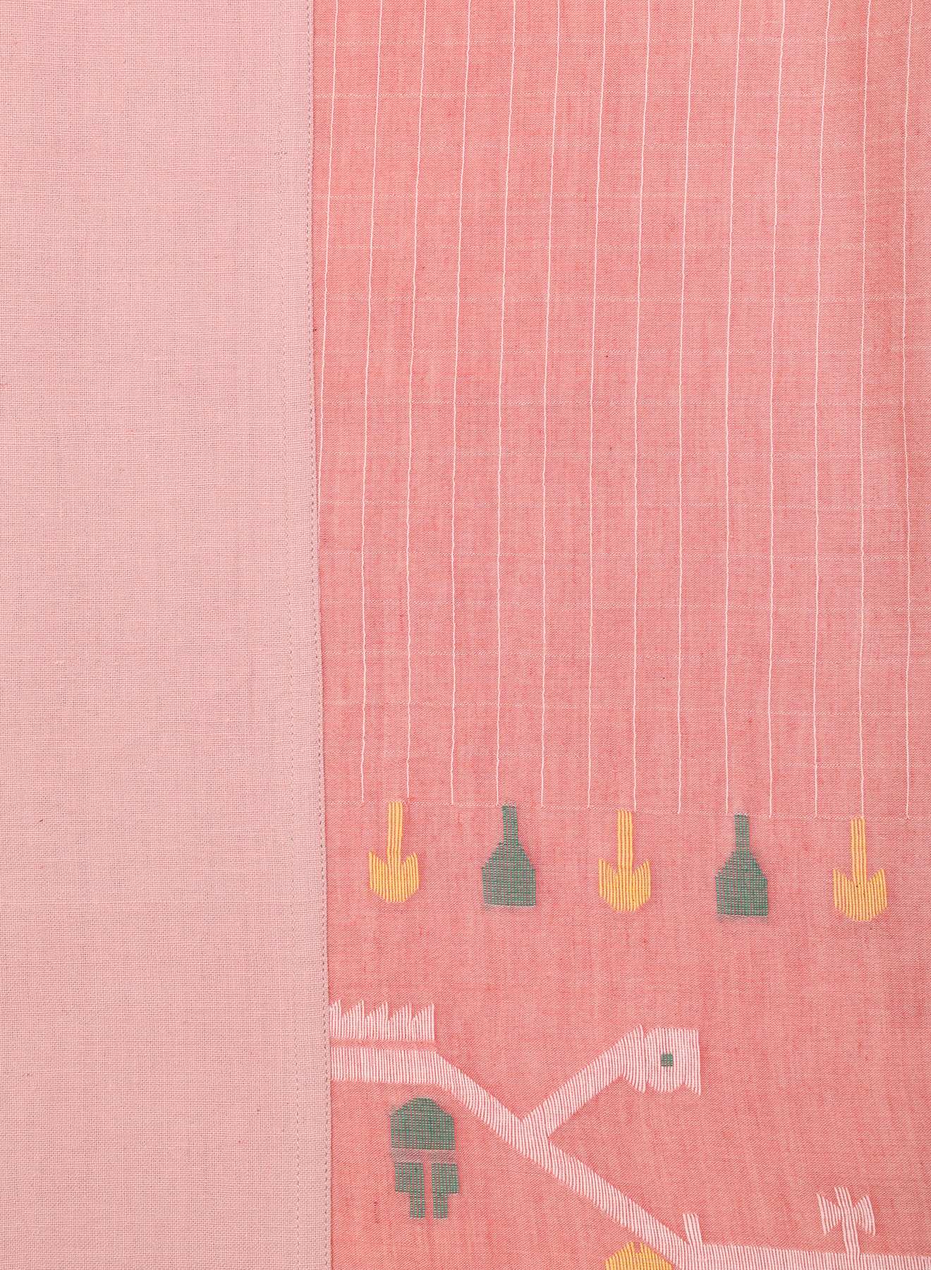 This piece features Jamdhani handcrafted by master weaver Jaggnath Dey in West Bengal, with each motif delicately inlaid by hand.