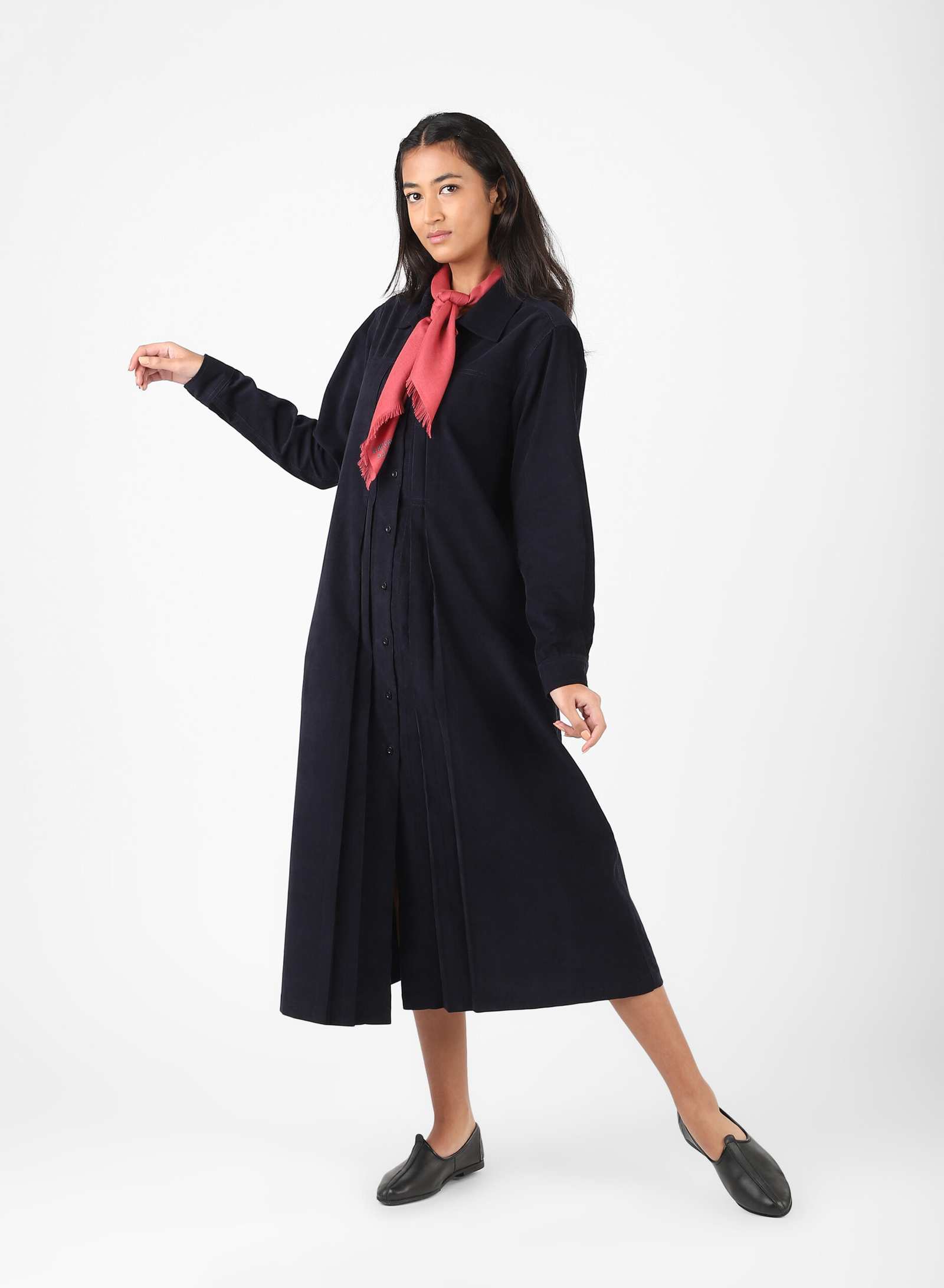 - Shirt dress with front pleats