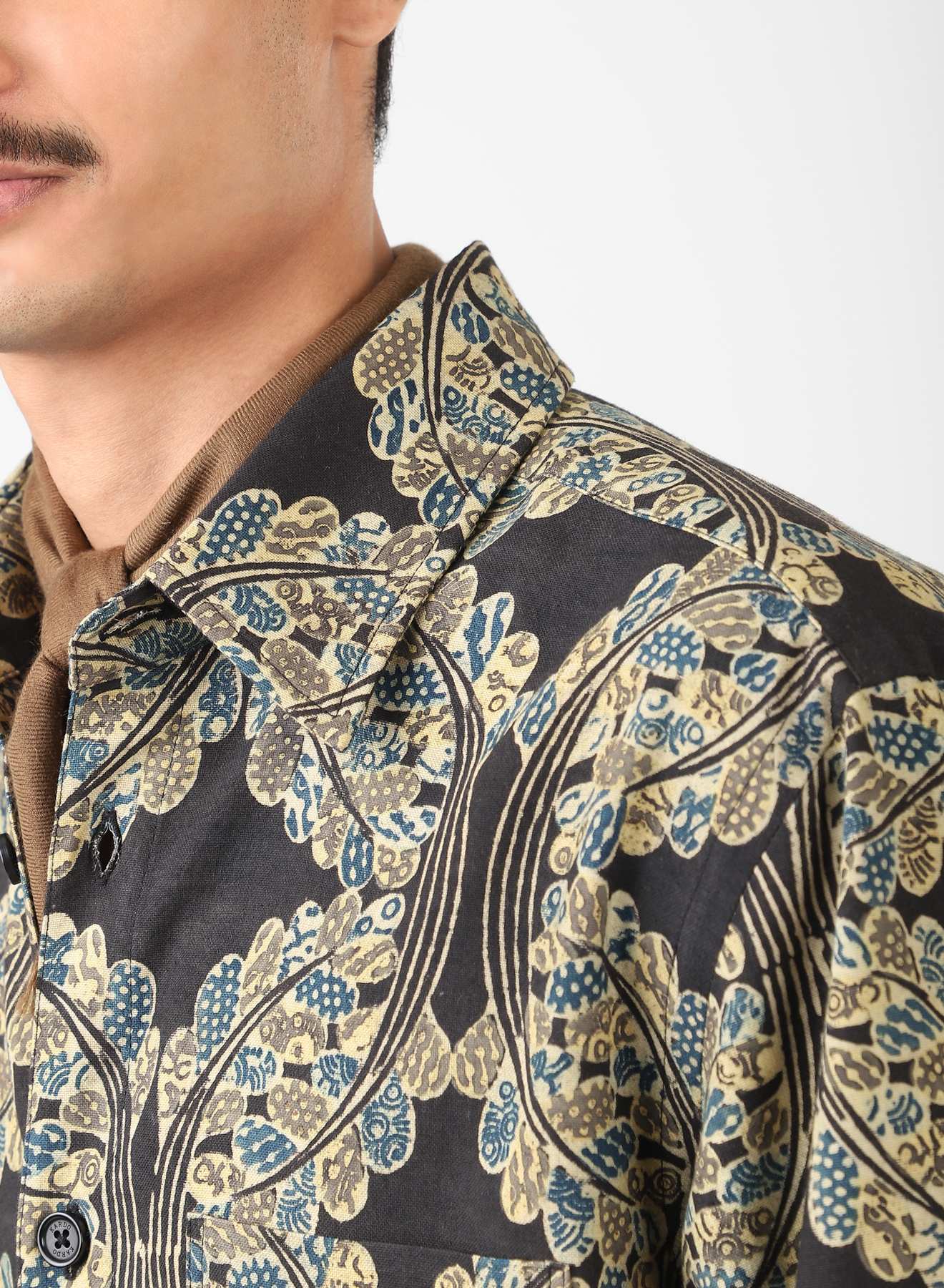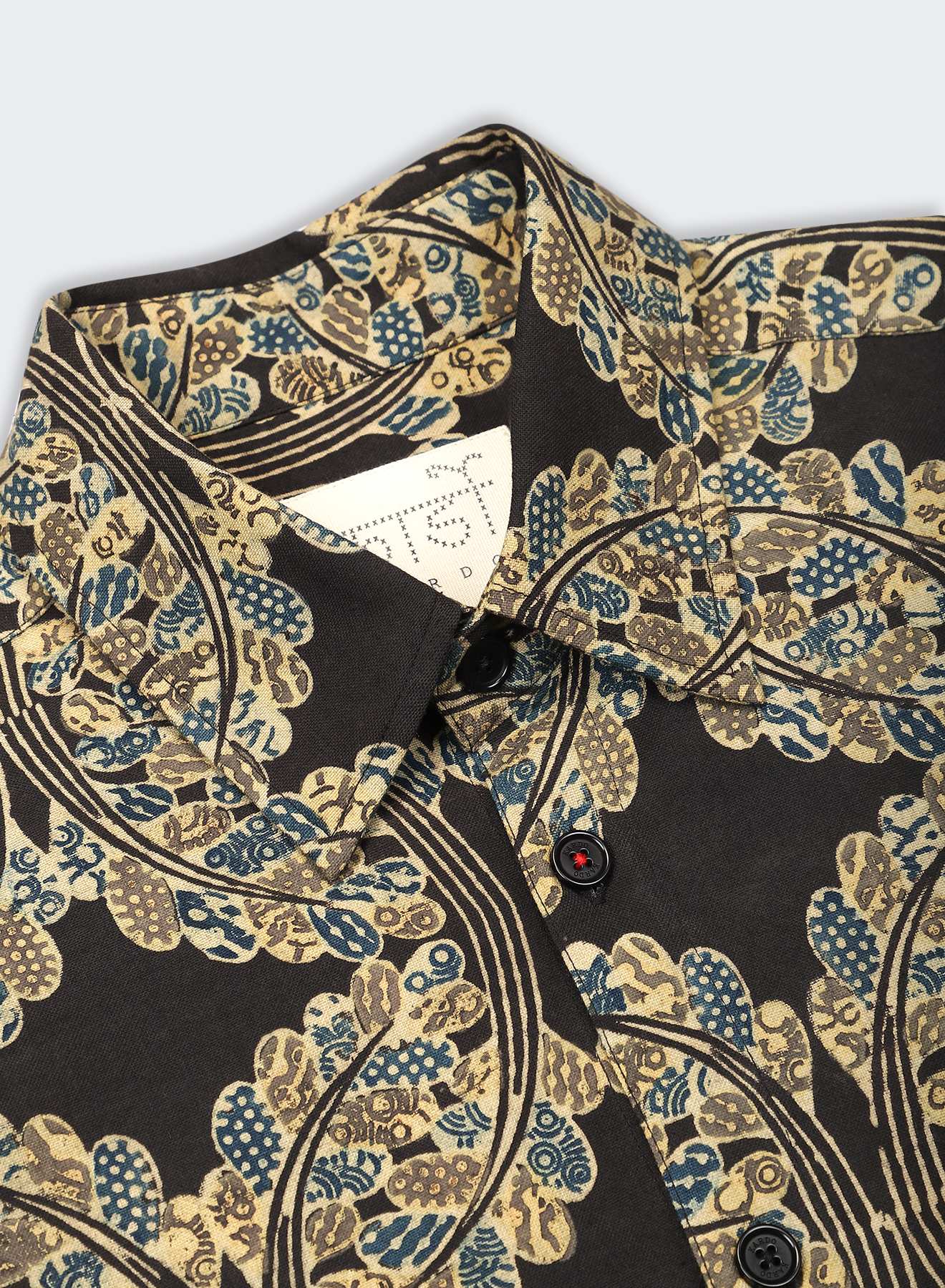 Ajrakh block printing is a centuries-old craft that uses natural dyes and layered resist to create precise geometric patterns. In Ajrakhpur, Gujarat, we work with artisan Sufiyan Khatri and his team, who guide the fabric through many careful stages of printing and dyeing. Each length carries deep, plant-derived colours and patterns that hold their clarity while settling into the softness of the cloth.