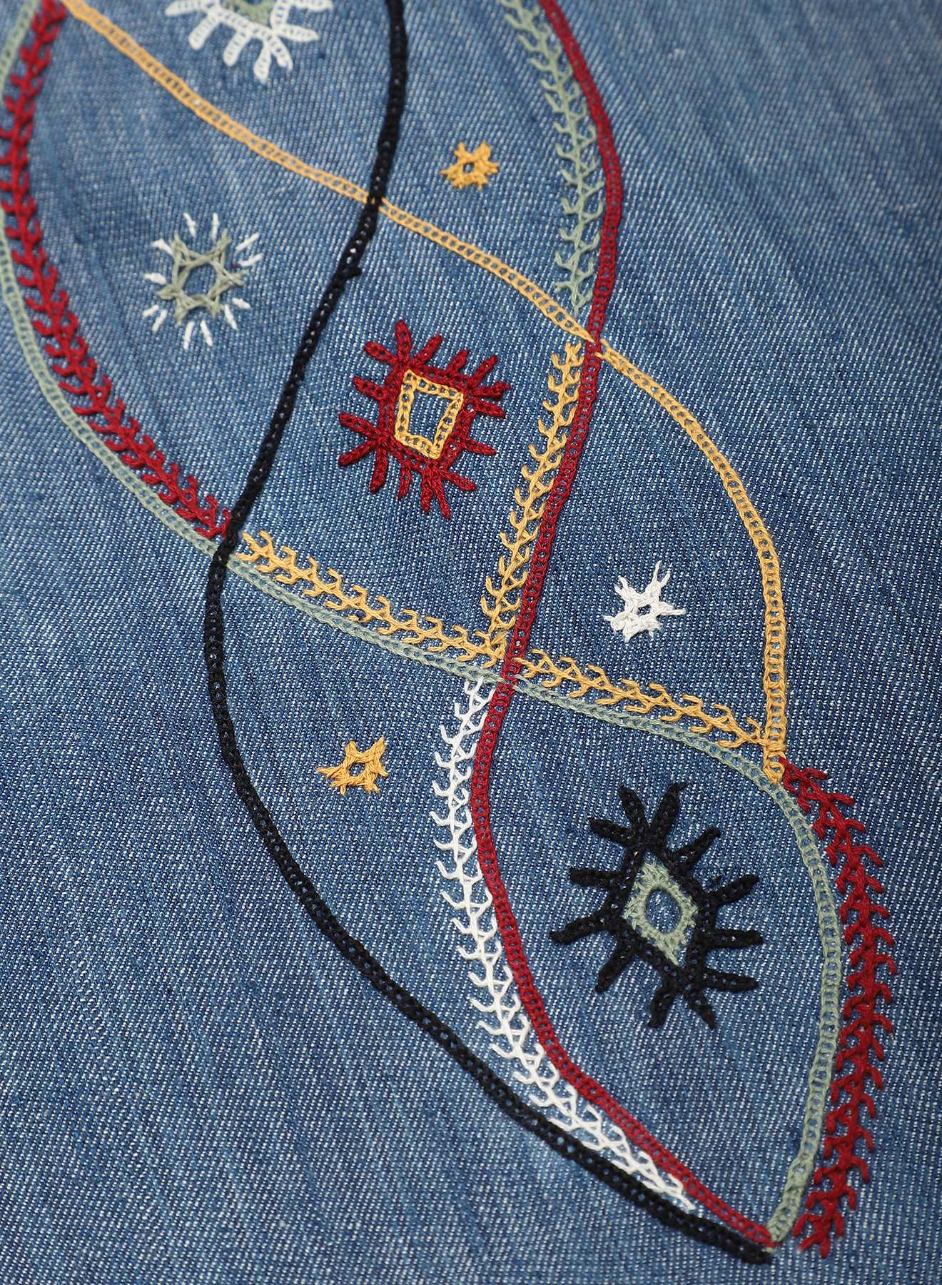 We work with artisans from the Rabari community of Gujarat, where embroidery has long been part of everyday life and dress. Using running, satin, and chain stitches, they build bold motifs in vivid colours, often setting mirrors or shells into the cloth. Each piece is intricate in detail yet confident in character, carrying forward the identity of a tradition that has lived through generations. For us, it is both embellishment and narrative — a surface alive with the history and imagination of the Rabari people.