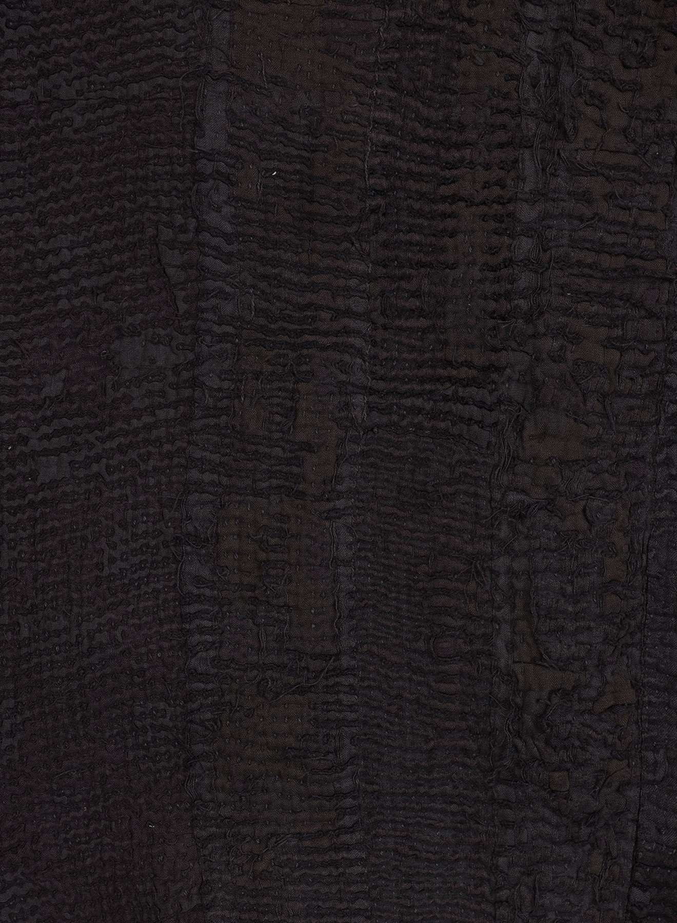 We work with kantha blankets made from old saris, layered and held together by the running stitch — a tradition that began in Bengal and spread across India. Softened by time, these quilts are reworked into garments where the aged tones, irregular patches, and hand-sewn seams become part of the design. Each piece carries the history of the cloth it once was while taking on a new form that keeps the kantha work in view.