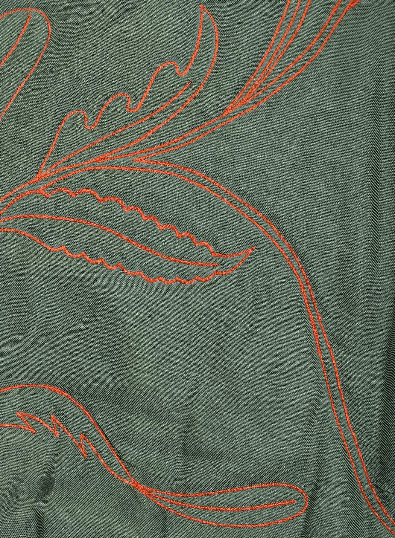 Woven in 100% silk twill, this fabric carries a soft sheen and a fluid, elegant weight—made more intricate by the Ari technique, a form of chain stitch embroidery practiced for generations in West Bengal. Each panel is embroidered on a frame before the garment is constructed, guided by Ashmat Ali, a seasoned artisan from Kolkata, with over two decades of craft behind him. This slow, deliberate process gives the fabric a pulse that carries into the final form of our designs.