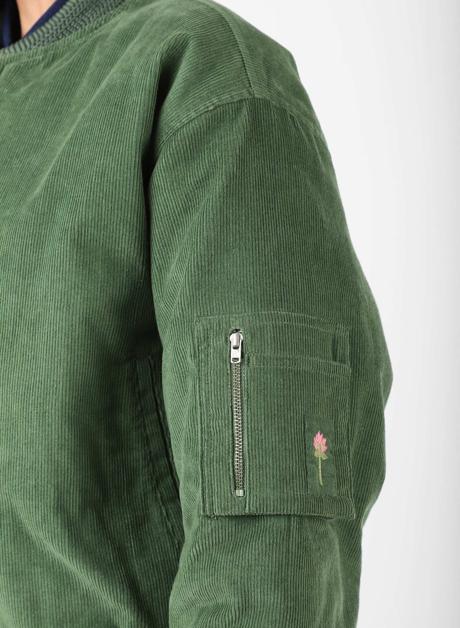 Drawn from the classic MA-1 bomber, this jacket holds the memory of its military origins but shifts the weight of its meaning. Traditionally built for utility, the form is softened here—both in material and intent. Lightly quilted, its surface is layered with delicate embroidery.