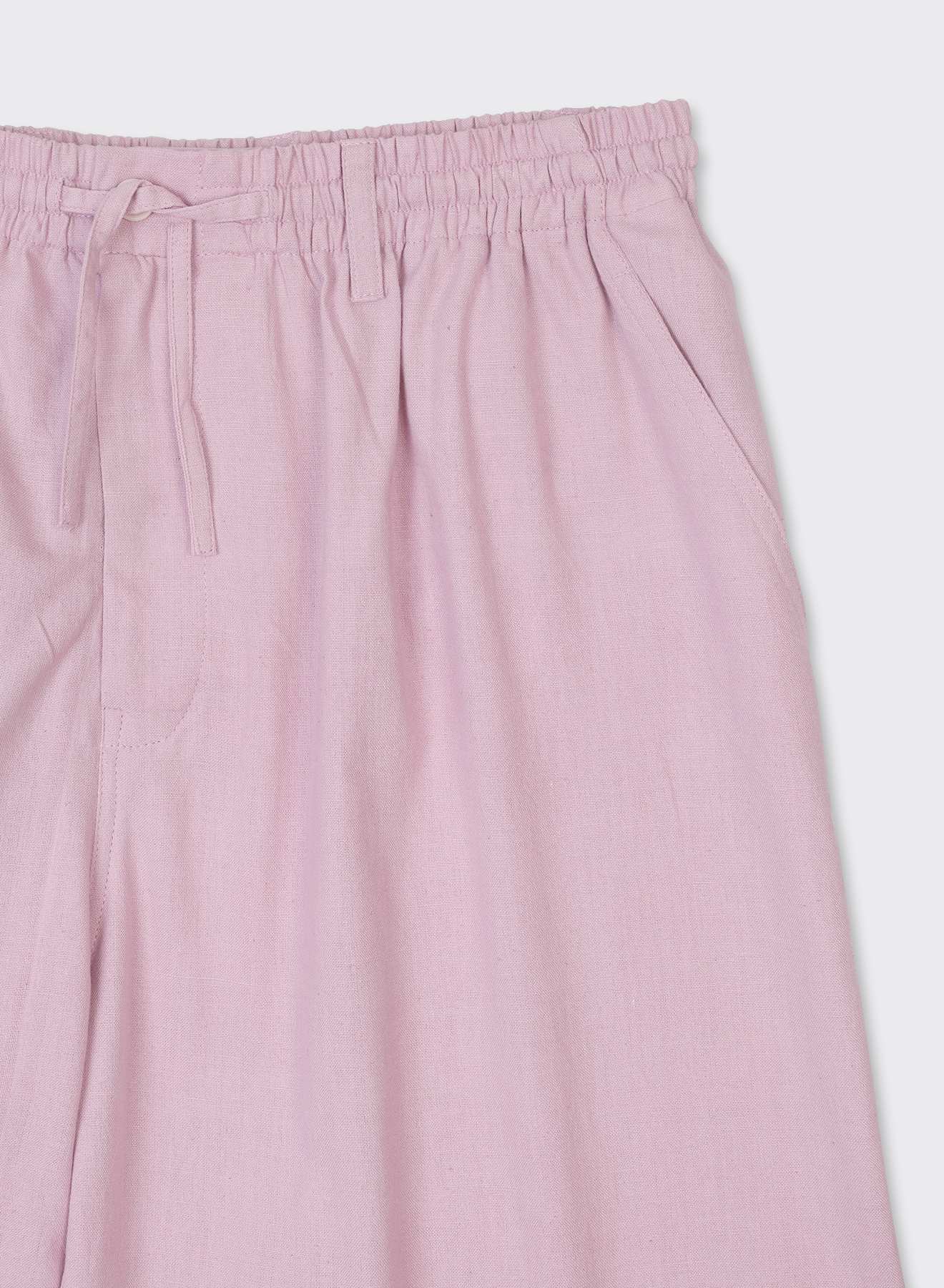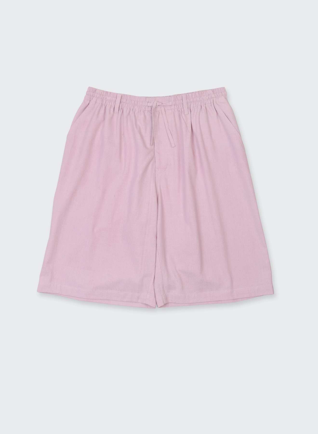 MILO sits high at the waist, where an elastic hold and drawstring gather the fabric into a broad, easy volume. Oversized in proportion, the shorts open generously, staying light as the width carries evenly downward.