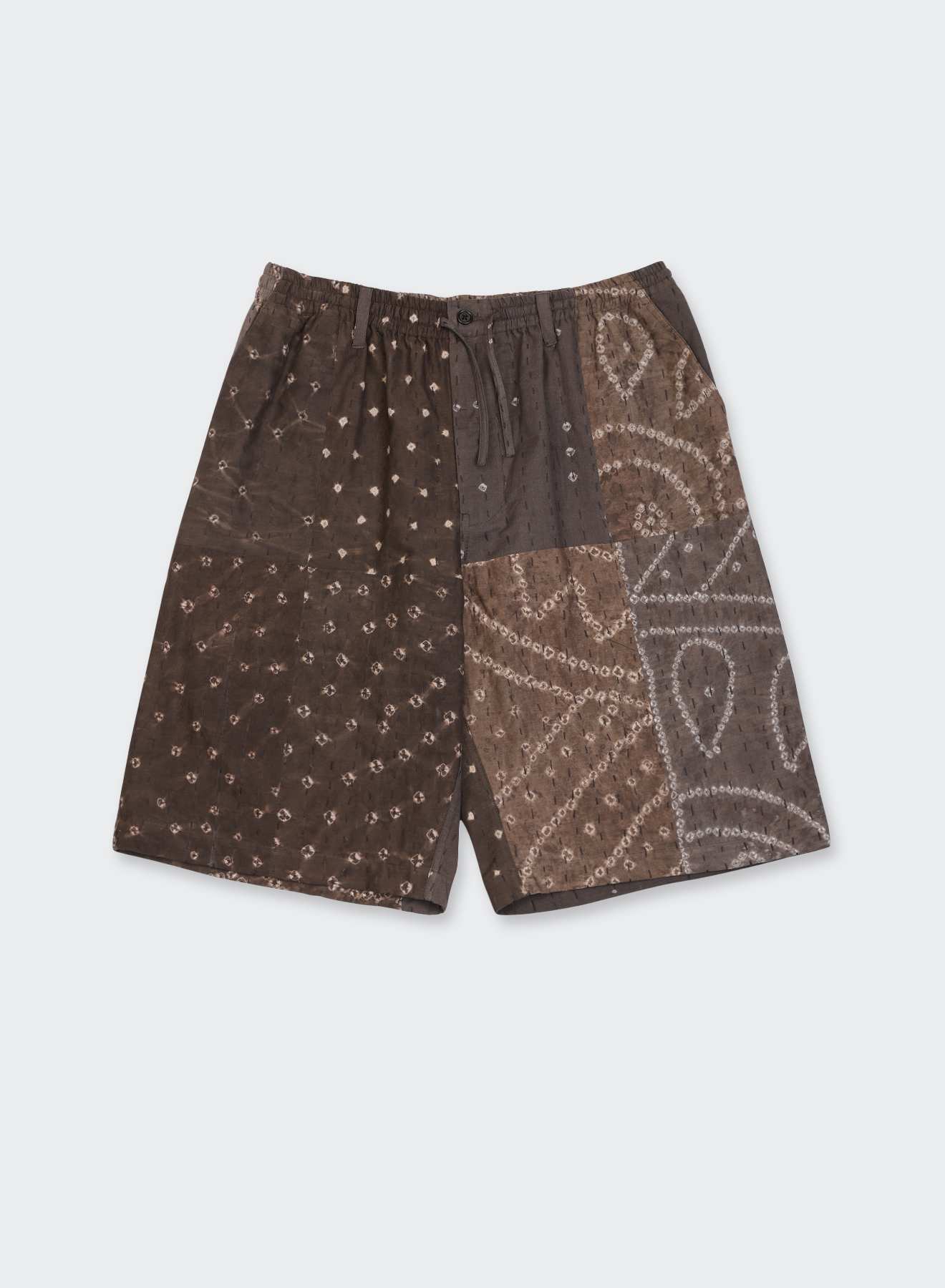MILO sits high at the waist, where an elastic hold and drawstring gather the fabric into a broad, easy volume. Oversized in proportion, the shorts open generously, staying light as the width carries evenly downward.