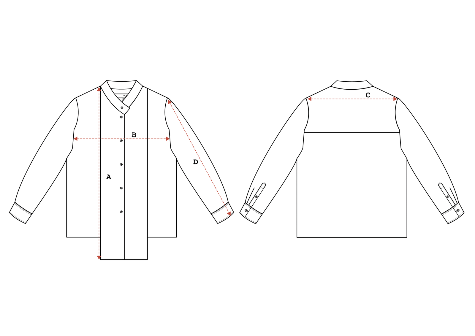 MONA draws from vintage ’70s shirting, refined with a mandarin collar and front flaps. A back yoke flap marks the shoulder with a distinct horizontal line, giving quiet structure to the upper frame. The cut stays balanced, holding its shape without weight.