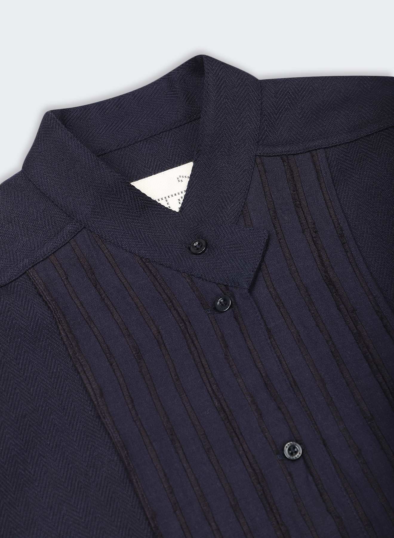 LS SHIRT WITH MANDARIAN COLLAR AND FRONT PANELS