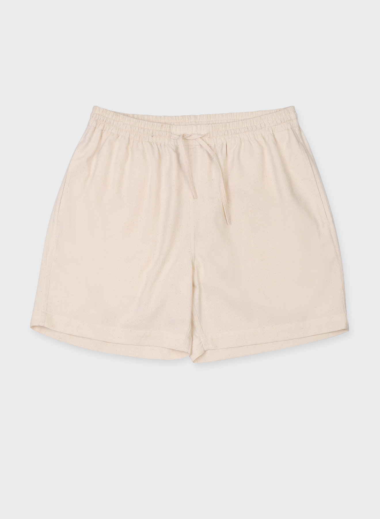 OLBIA sits clean at the waist, where an elastic hold gathers the fabric into a compact, easy volume. It wears lightly on the body, keeping the shape simple and unforced.