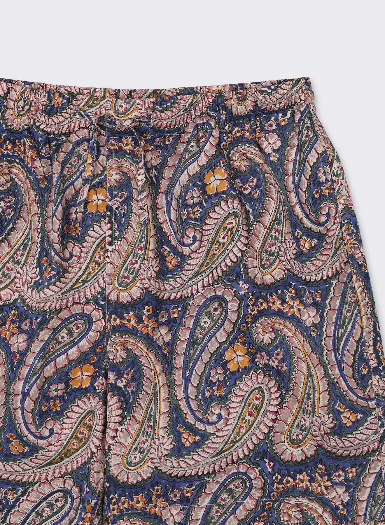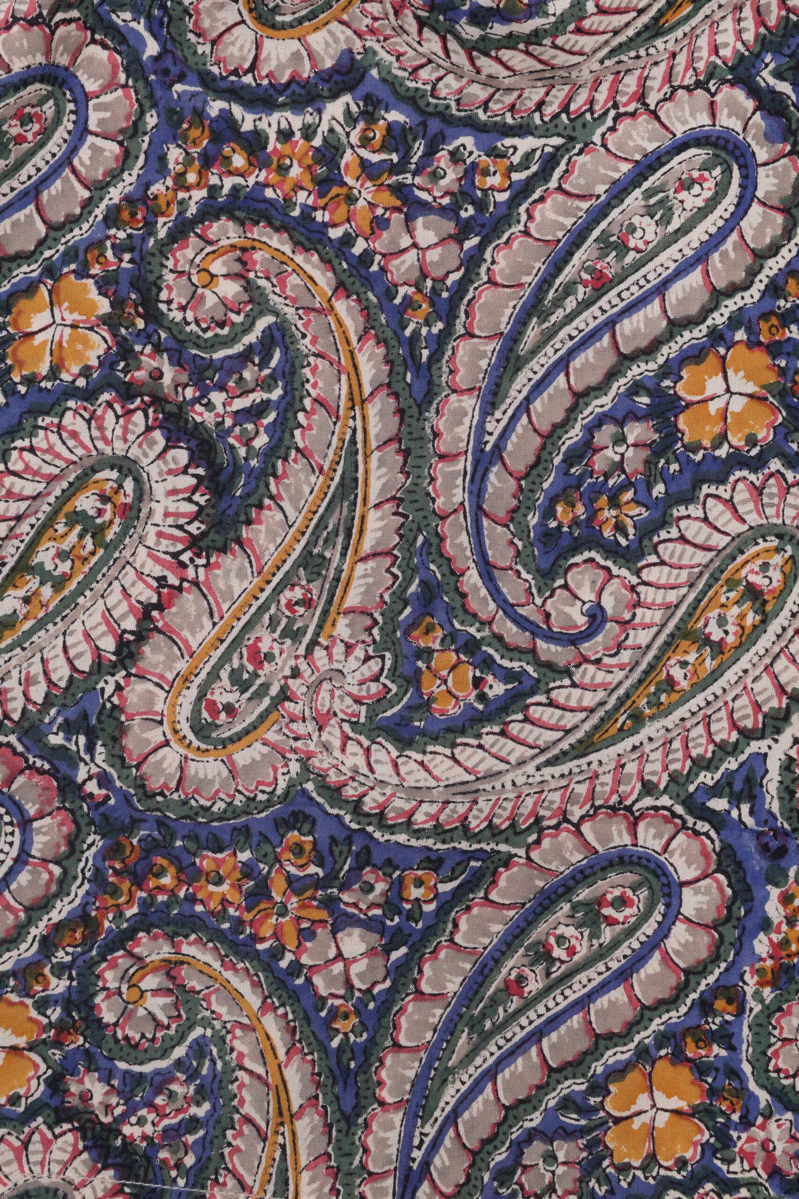 We print these fabrics with hand-carved wooden blocks, each block carrying a fragment of the larger pattern. Every colour is pressed in a separate pass, aligned by eye and hand with practiced precision. We work with master printers in Rajasthan, including Anokhi and Titanwala, and often turn to natural dyes for their depth and warmth. As the cloth is printed, the colours settle into the fibres themselves, so the pattern becomes part of the fabric’s character, resting as naturally as the weave around it.
