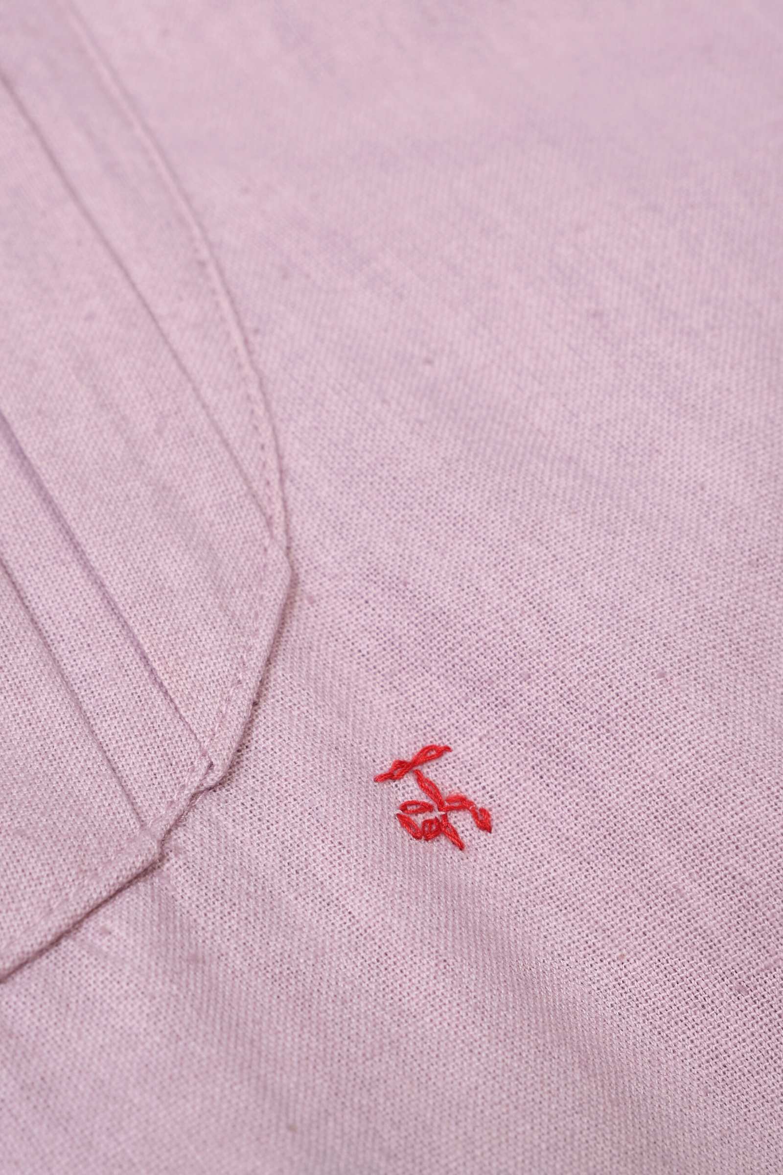 We work with hand-spun and handwoven khadi, made for us by Udyog Bharti. Its surface holds small shifts in tension and tone, with slubs and gentle irregularities that arise from the hand process ? details that make every piece unique.