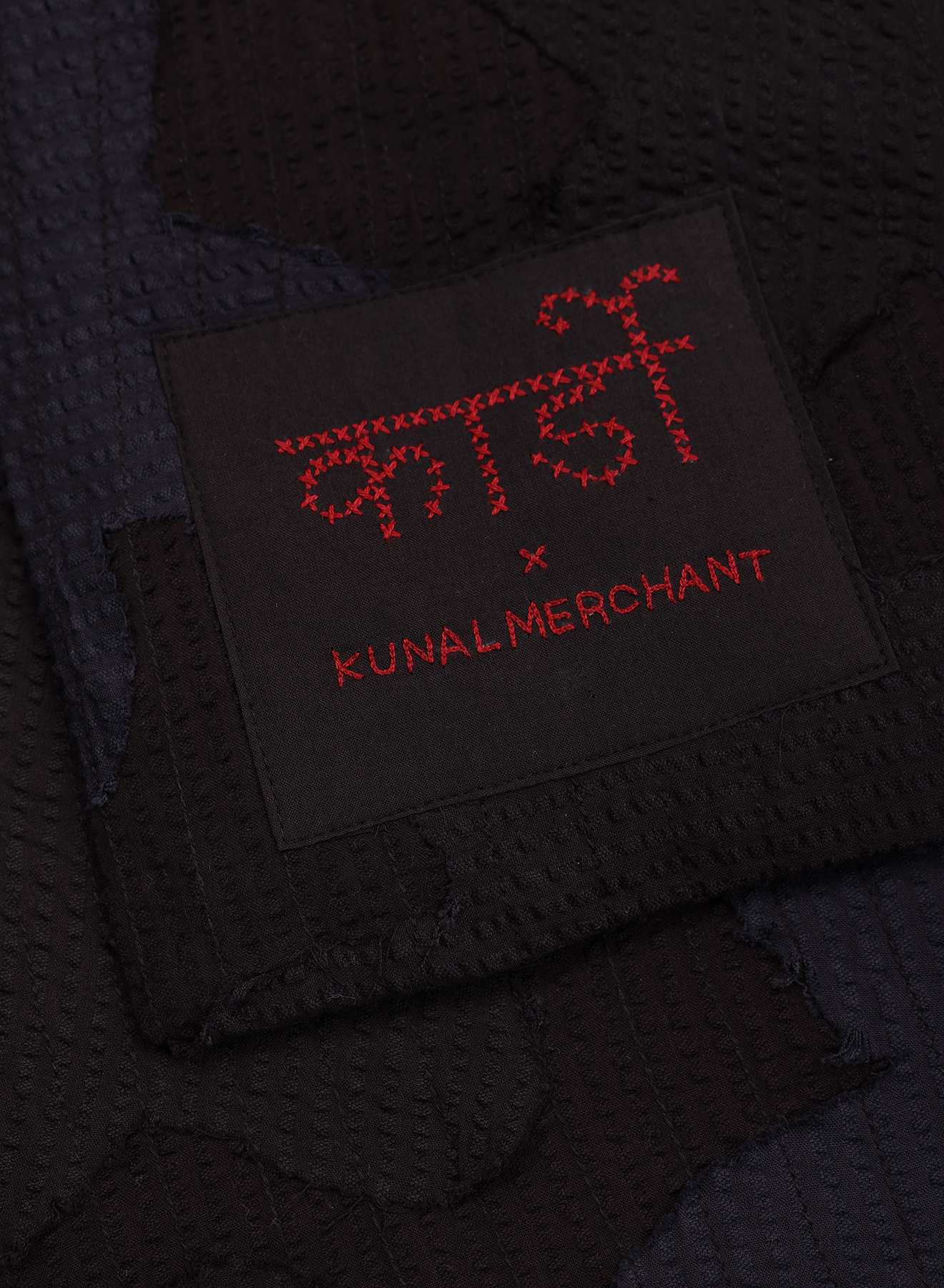 We cut dead stock cotton seersucker, dyed into floral shapes that are quilted together in a camouflage arrangement. The raw edges are left visible, softening the outlines as the fabric is used and handled. What results is a surface layered with colour, pattern, and texture — one that shifts with wear, changing slowly in both look and feel over time.