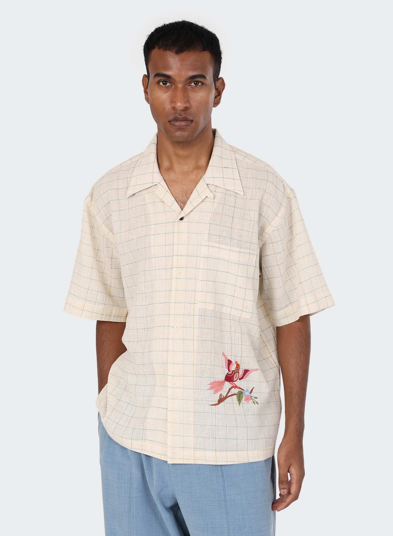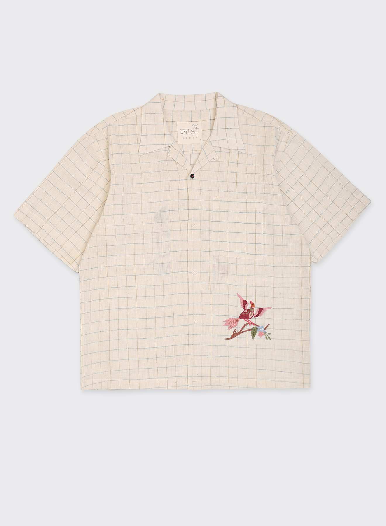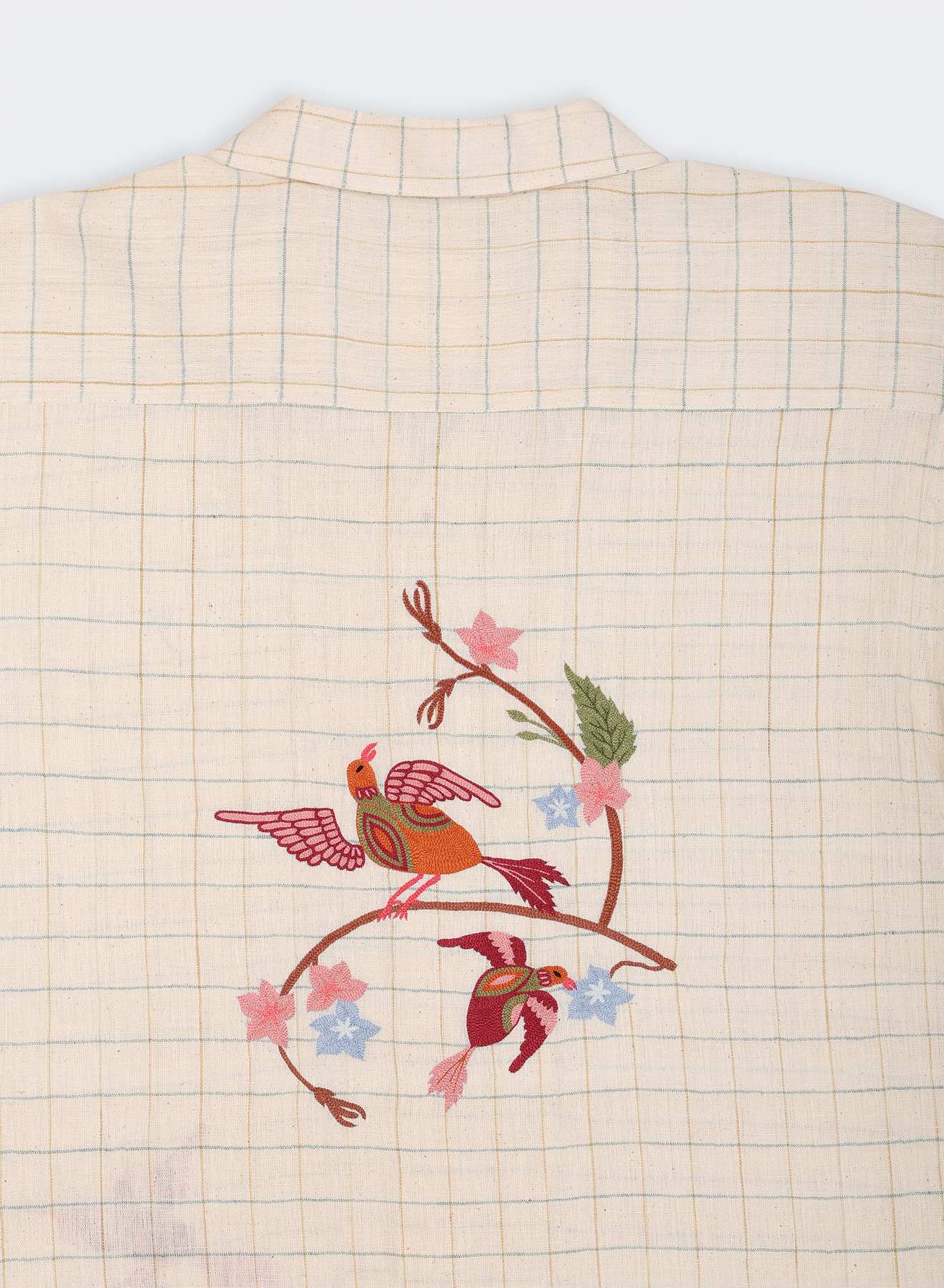 We work with artisans who continue the tradition of ari embroidery — a hand-done chain stitch passed down through generations. Embroidered on handwoven Kala Cotton sourced from Khamir Craft in Gujarat, each panel is worked on a frame before the garment is stitched, a process that unfolds over three days or more. Md. Ashraf — a master embroiderer from Bengal — works with ari chain stitch to create flowing rhythms across it. From fine, near-invisible thread work to bold, dimensional textures, every motif is created exclusively by hand—carrying the understated finesse of a seasoned maker and the slow weave of time-honoured language.