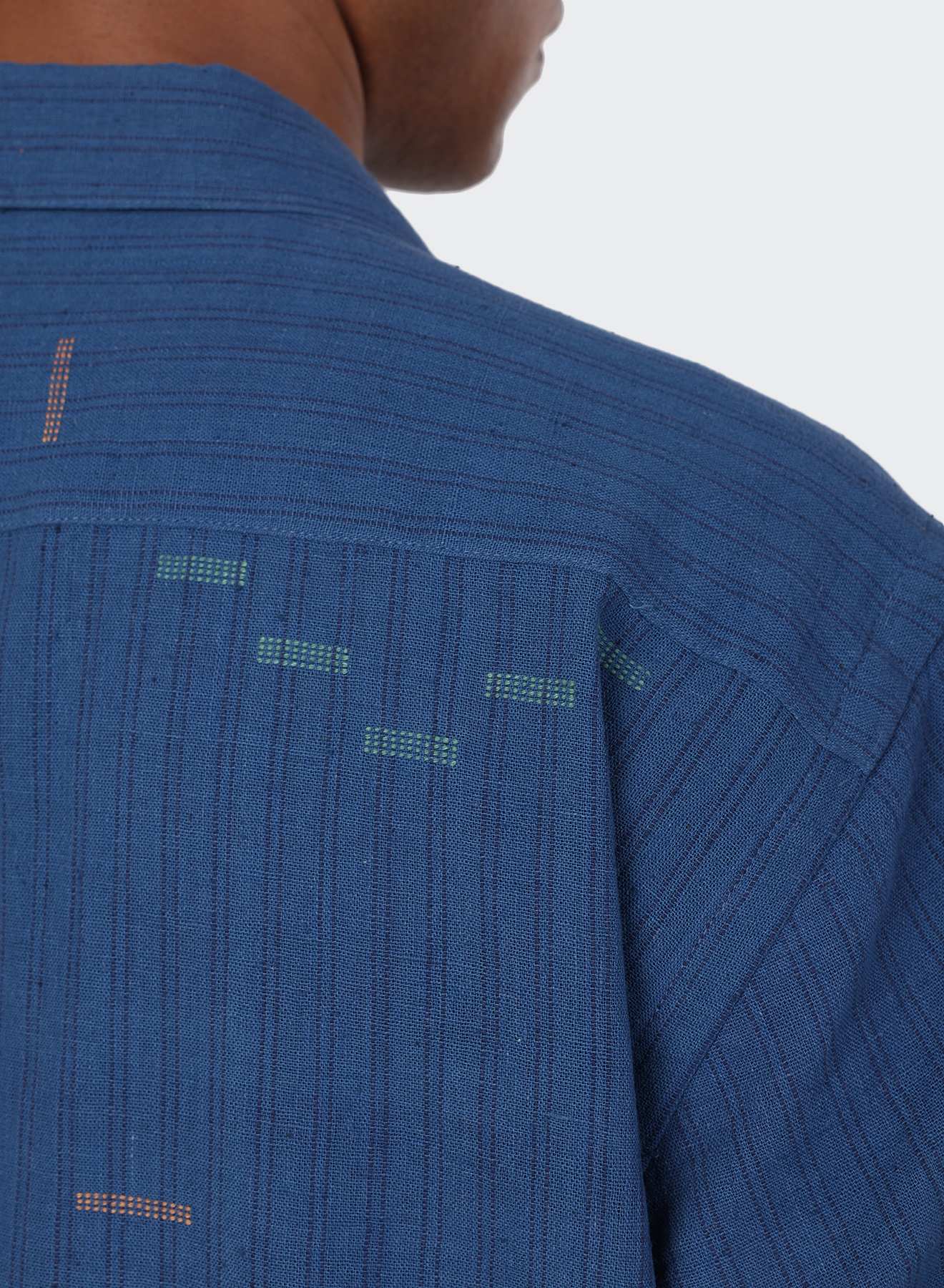 This fabric is woven on a handloom by artisans working with Glocal Weaves, using an extra weft technique, a process where motifs are laid into the cloth by hand with a denser thread across the warp. Each design is built pick by pick, demanding precision, patience, and the skill of highly trained artisans. It is a slow and exacting craft, and one that gives the fabric its depth and character.
