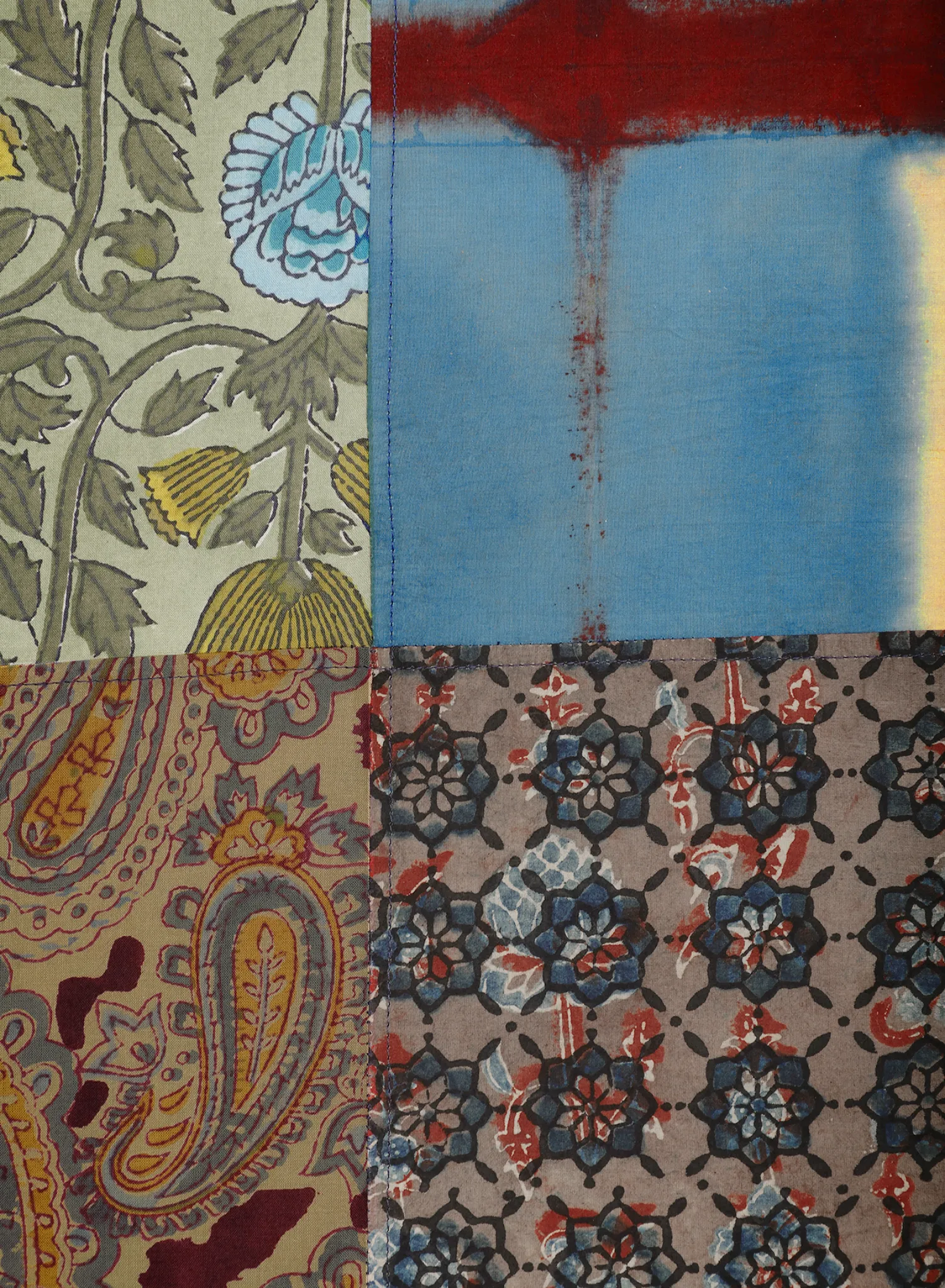 The garment may exhibit patchy dyeing and marks as a result of the natural dyeing process. The print may naturally fade due to exposure to sunlight and washing. Dry crocking (the transfer of dye onto other fabrics and surfaces when dry) may also occur. Refrain from pairing this clothing item with light colors until any remaining color has been eliminated, as there might be some color transfer.