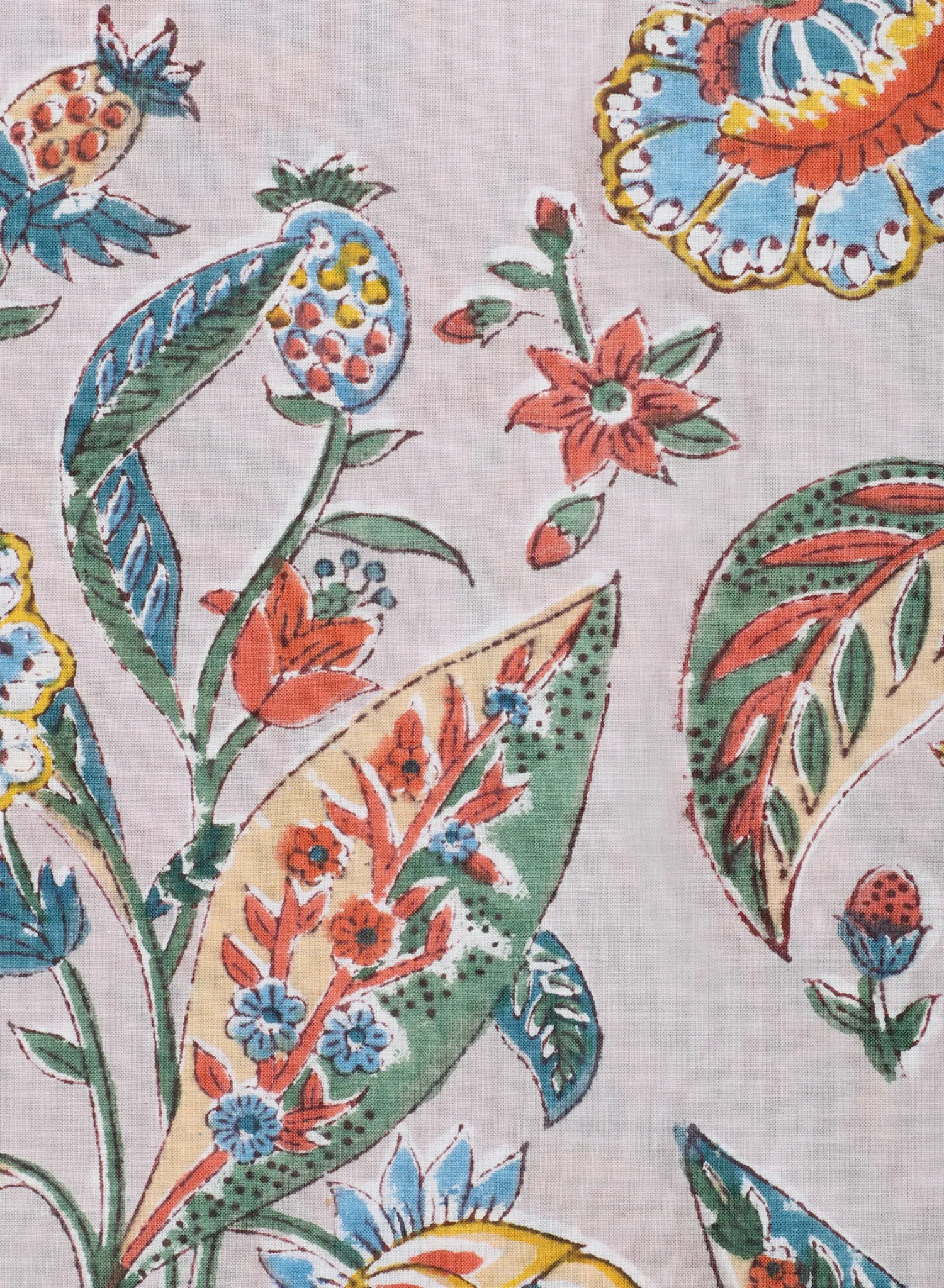 The garment may exhibit patchy dyeing and marks as a result of the natural dyeing process. The print may naturally fade due to exposure to sunlight and washing. Dry crocking (the transfer of dye onto other fabrics and surfaces when dry) may also occur. Refrain from pairing this clothing item with light colors until any remaining color has been eliminated, as there might be some color transfer.