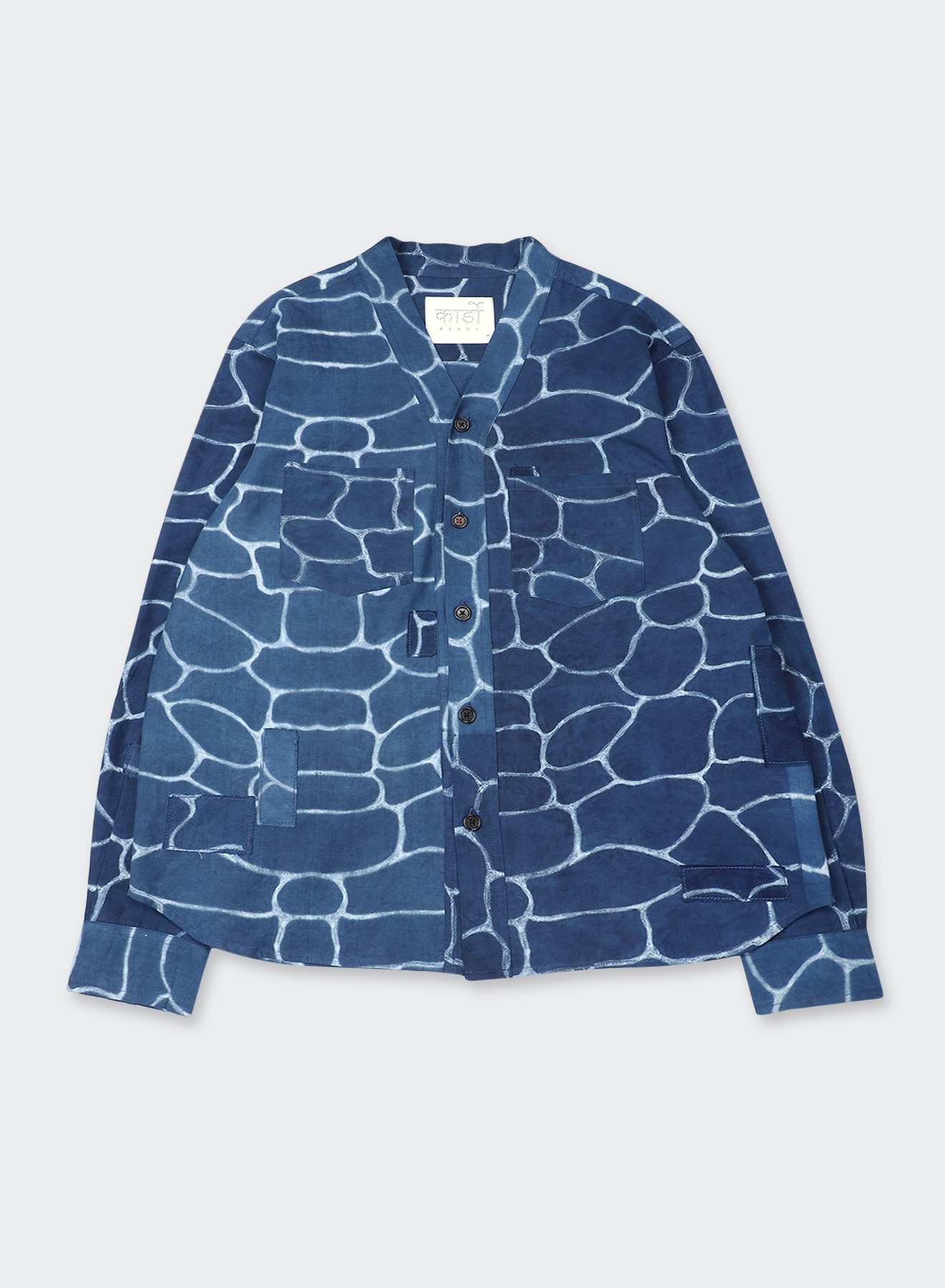 We work with medium-weight khadi cotton, prepared with stitched or bound resist before it meets the dye. At UNNATI, the fabric is coloured in natural indigo or harda extract, each drawn from plants and absorbed slowly into the fibre. Once the bindings are undone, the patterns emerge — shaped by folds, knots, and the tension of the hand that held them. For us, the beauty is in this moment of release: a cloth carrying both the depth of plant-based colour and the individuality of a design made entirely by hand.