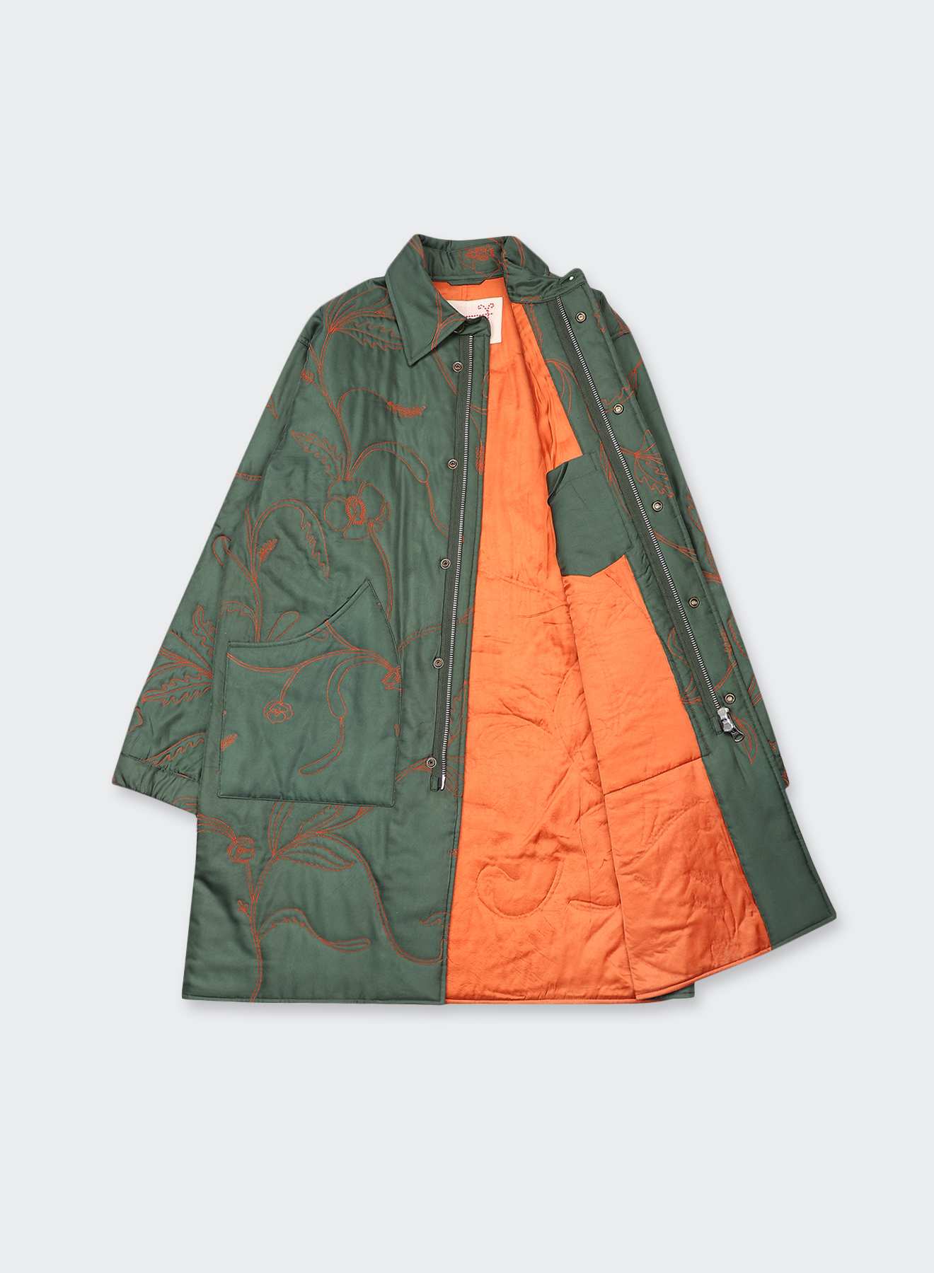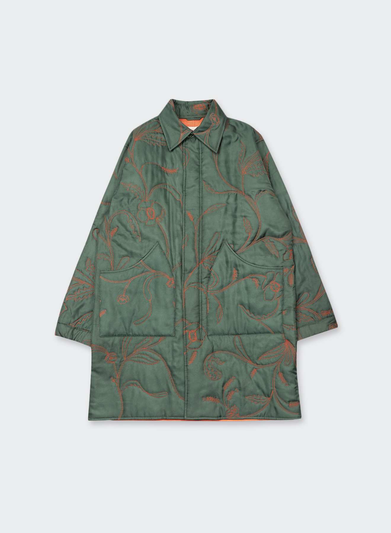 QUILTED LONG COAT WITH ZIP & SNAP BUTTONS