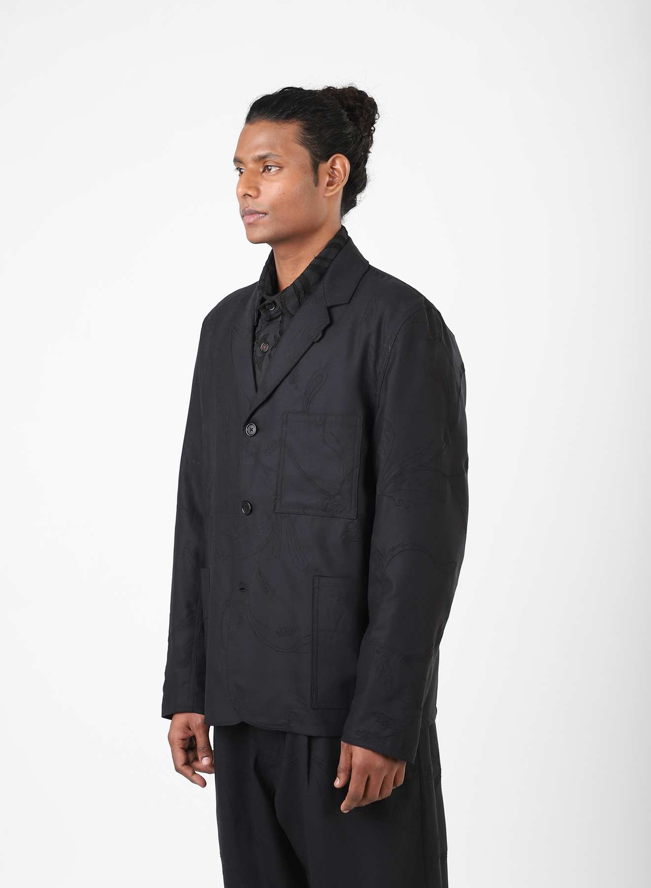 SOMESH introduces quiet structure across the surface, softening the edge of its tailored shape. While the blazer carries the outline of suiting, its ease recalls the sensibility of vintage workwear—considered in detail and in step with the values of the collection.