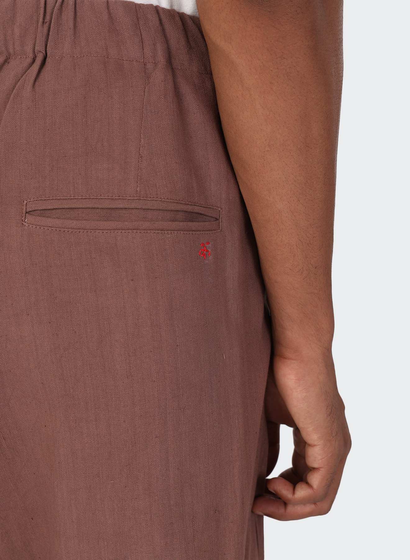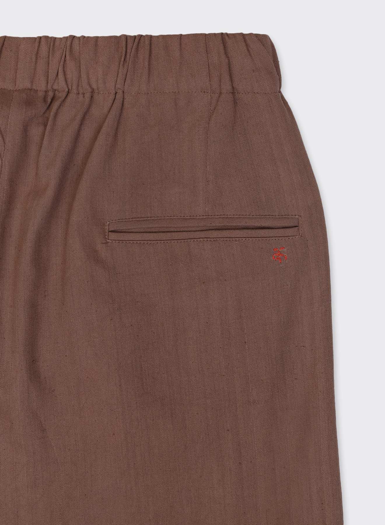 TAKA features a reverse pleat construction that lifts the upper shape, allowing room at the thigh. The cut tapers steadily from knee to hem, creating a clean, downward line. With an elasticated waistband and drawstring closure, the structure remains flexible while holding form.