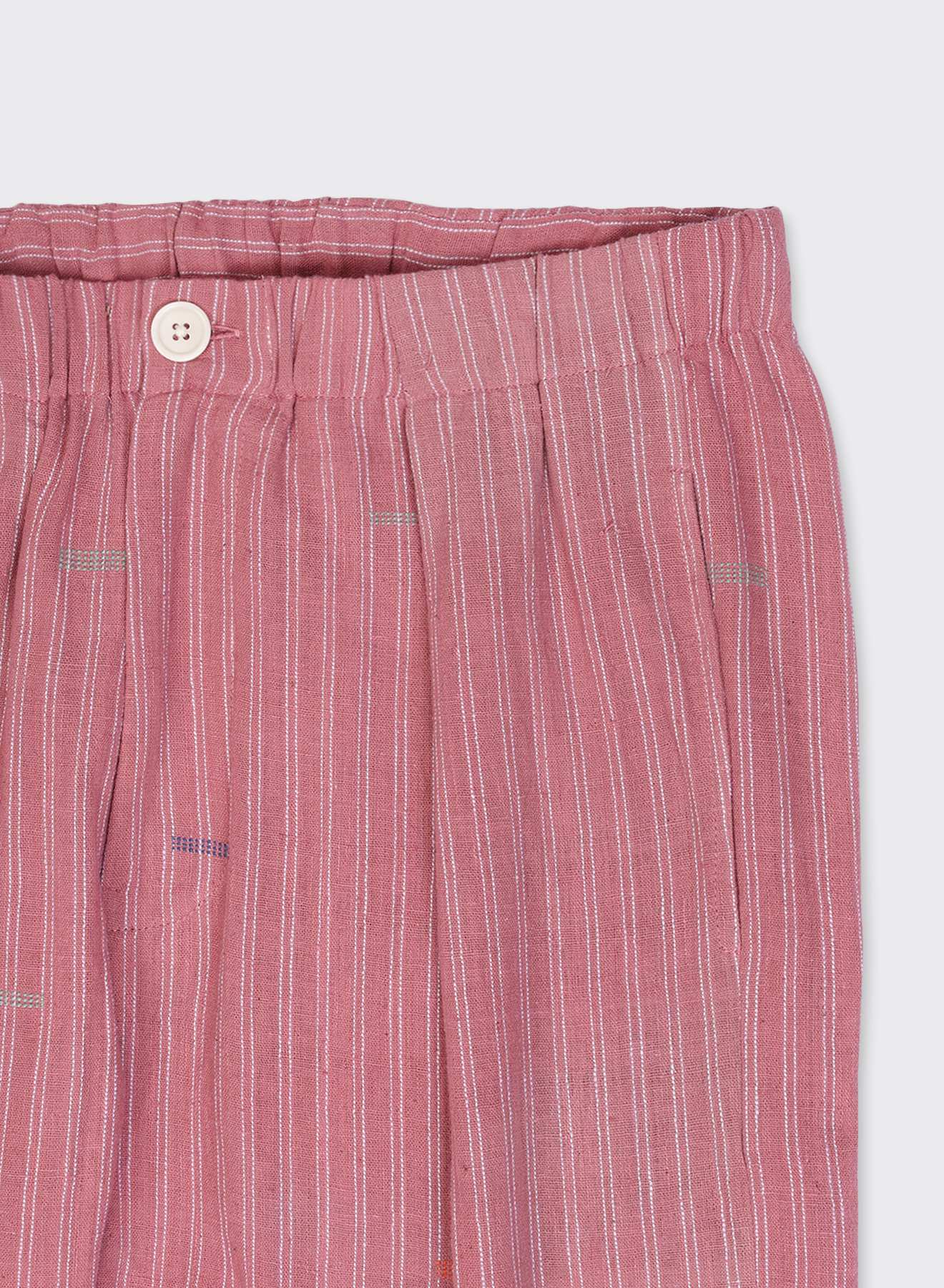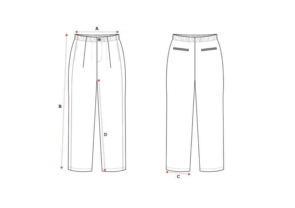 TAKA features a reverse pleat construction that lifts the upper shape, allowing room at the thigh. The cut tapers steadily from knee to hem, creating a clean, downward line. With an elasticated waistband and drawstring closure, the structure remains flexible while holding form.