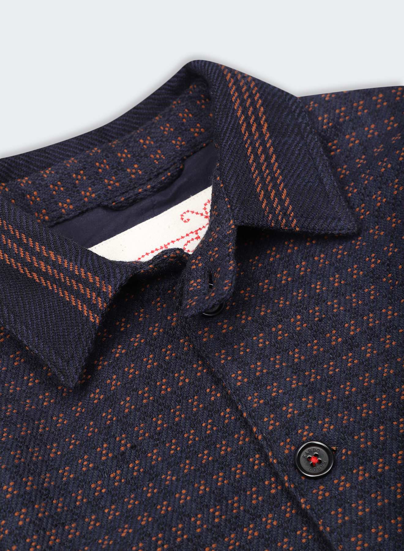 YOSHI marks a refined iteration of the baker’s jacket—cut straight through the body, with a high collar that lends a purposeful outline. Slight ease at the seams offers breathing space, while the overall shape stays close and contained. Grounded in the practical heritage of workwear, it holds a contoured silhouette.