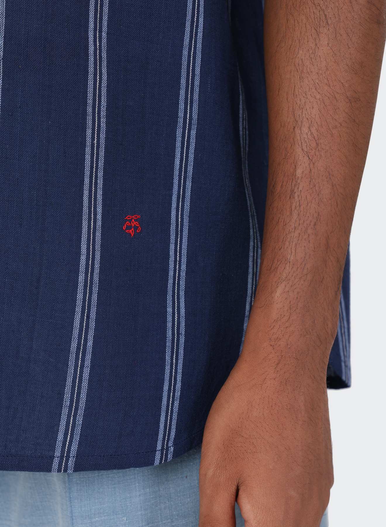 The handloom remains at the centre of our work, where every fabric begins in the hands of a weaver. This cloth is woven by master weaver Dhanji Daya Marwada in Bhuj, Gujarat, on frame looms guided entirely by hand and foot, carrying a quiet devotion to craft in every length of fabric. Each pass of the shuttle carries its touch, leaving small shifts in tension and subtle changes in shade that belong only to handwork. To us, these are the signs of a living process — what makes the cloth feel honest when held, and comforting in the way it is worn over time.
