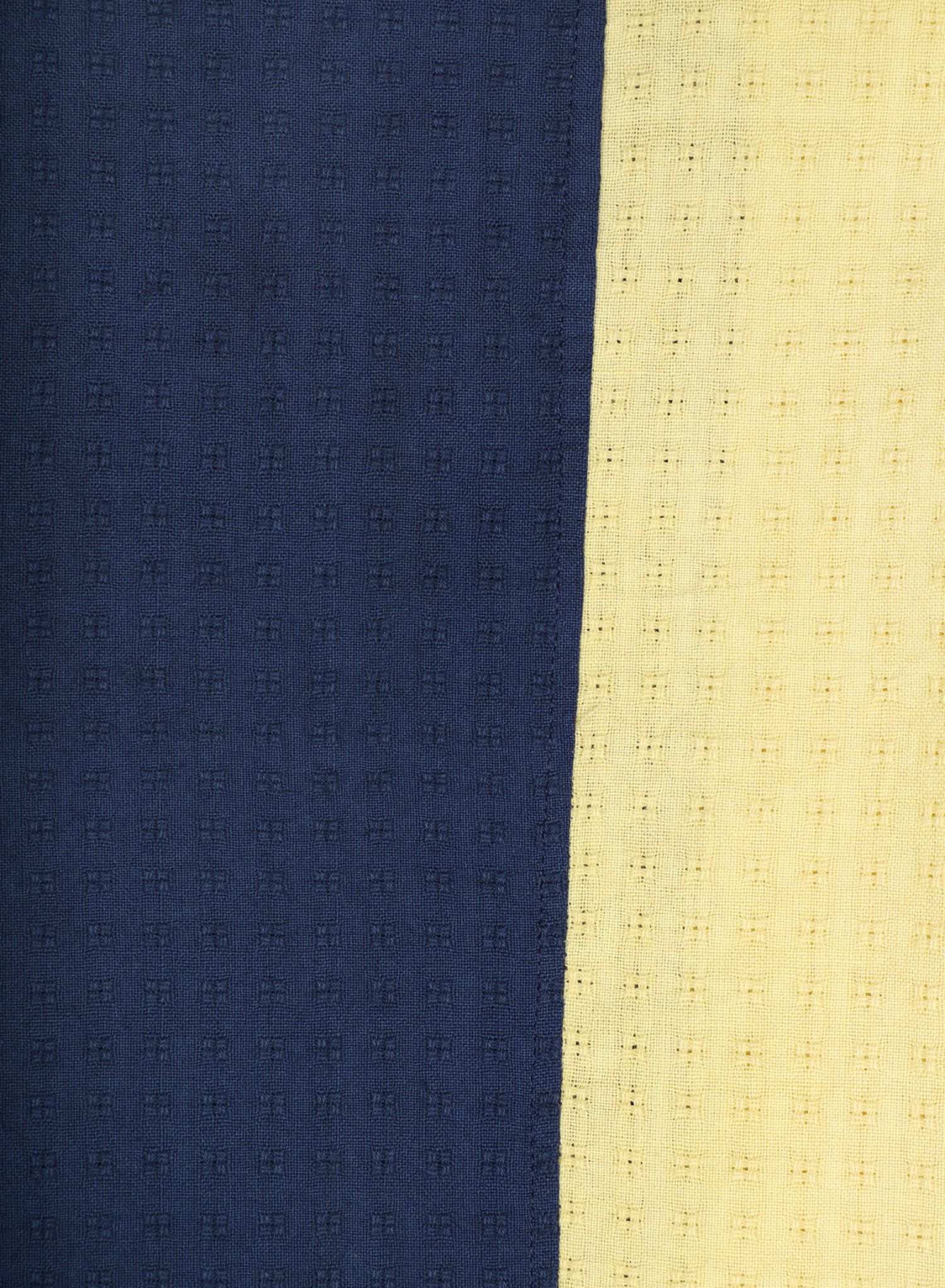 The fabric used in the garment is woven on a handloom by a master fabric weavers from ‘Glocal’ often using natural dyed yarns. The panels are stitched to create these beautiful stripe patches. Slight imperfections and flaws are characteristics of the fabric due to the hand process.