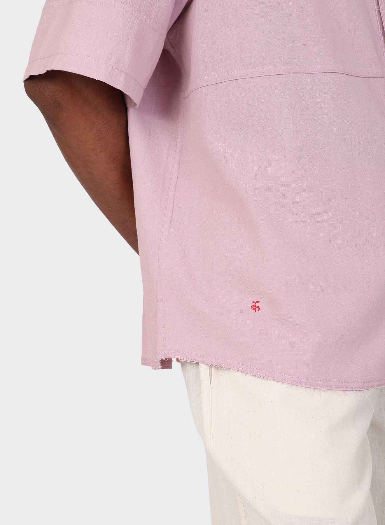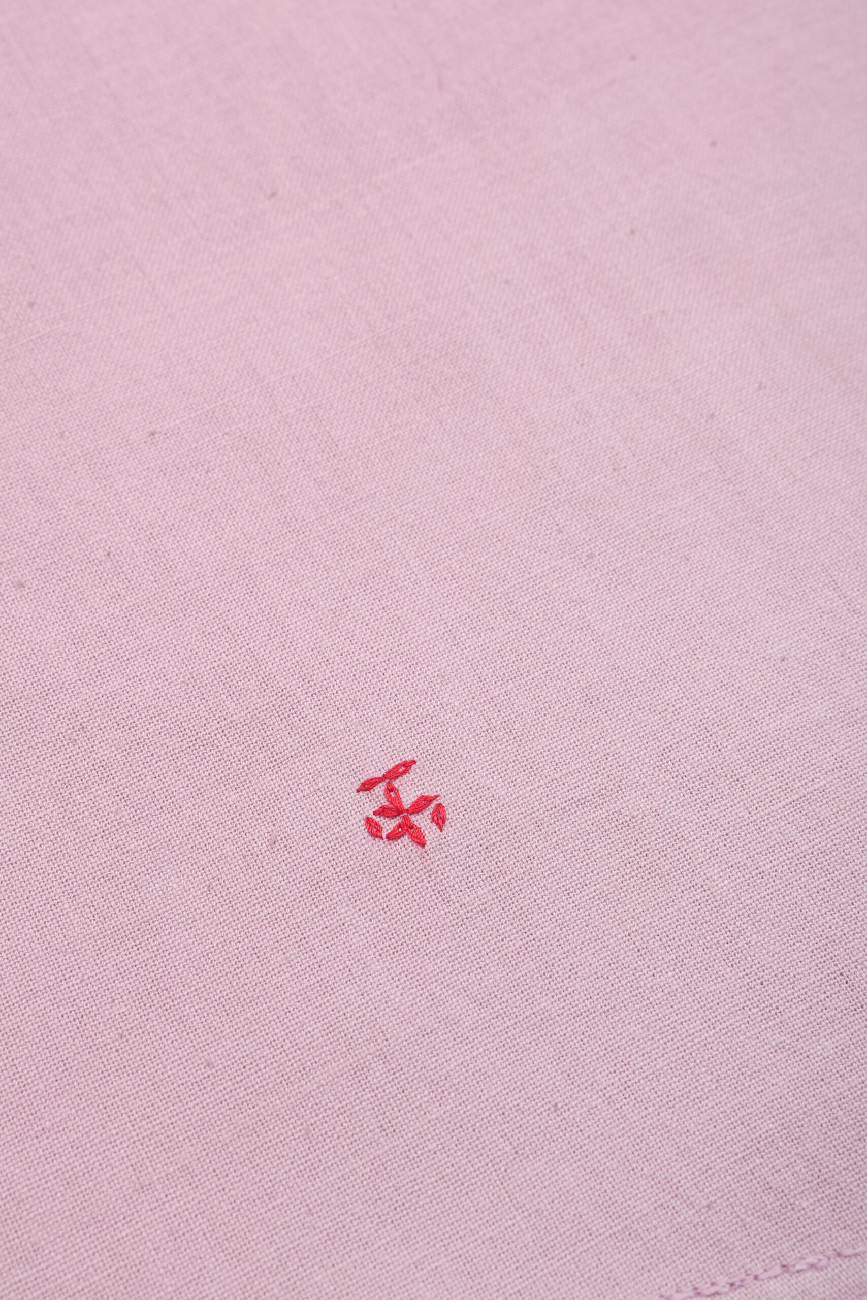 We work with hand-spun and handwoven khadi, made for us by Udyog Bharti. Its surface holds small shifts in tension and tone, with slubs and gentle irregularities that arise from the hand process – details that make every piece unique.